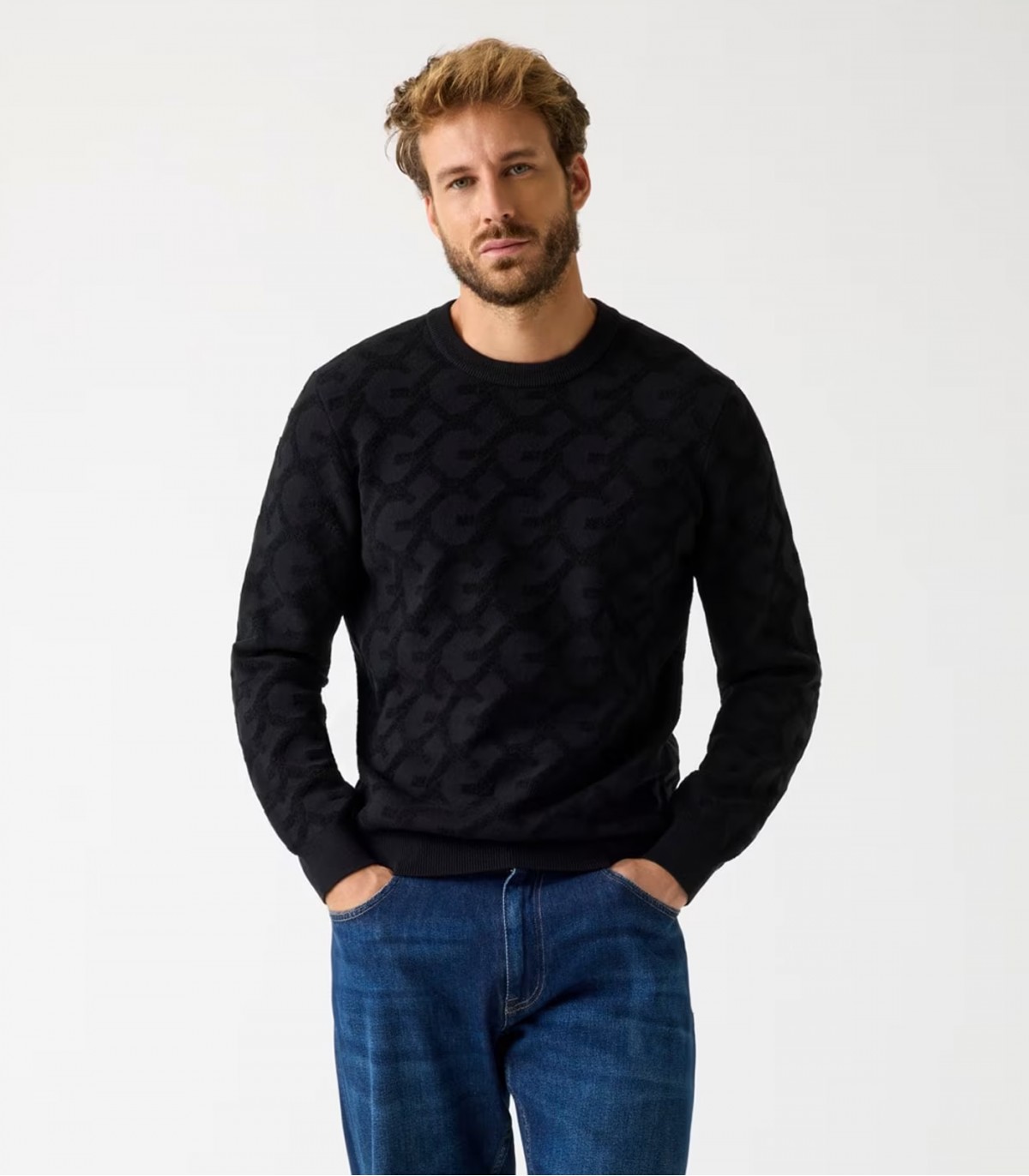 Praktisks un ērts vīriešu džemperis no Guess vēsām dienām. Minimālistisko izskatu papildina raksts, kas ieausts audumā tādā pašā tonī.