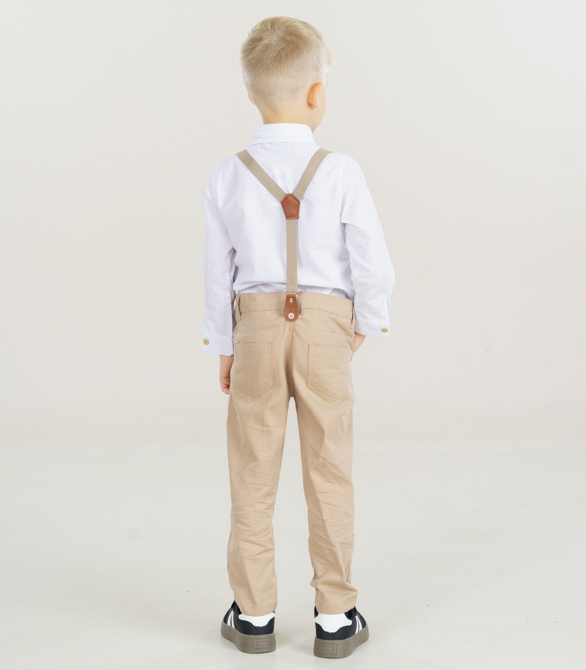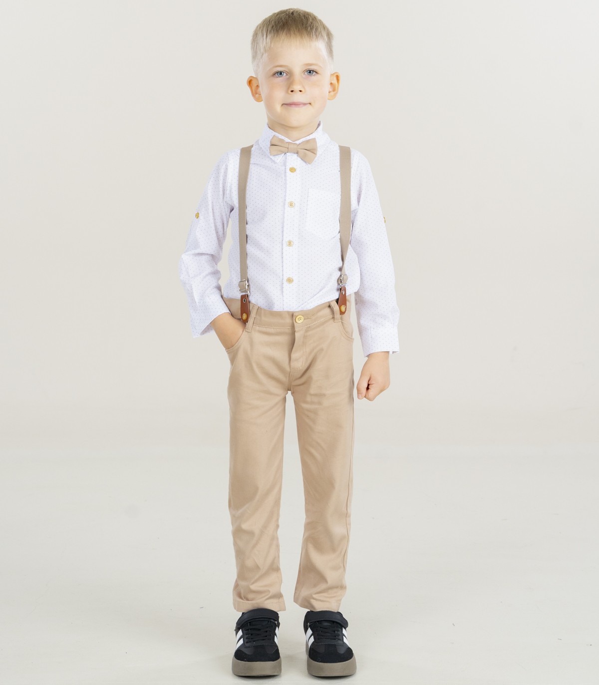 Svētku komplekts maziem zēniem. Komplektā ietilpst: bikses, bikšturi, krekls un tauriņš.