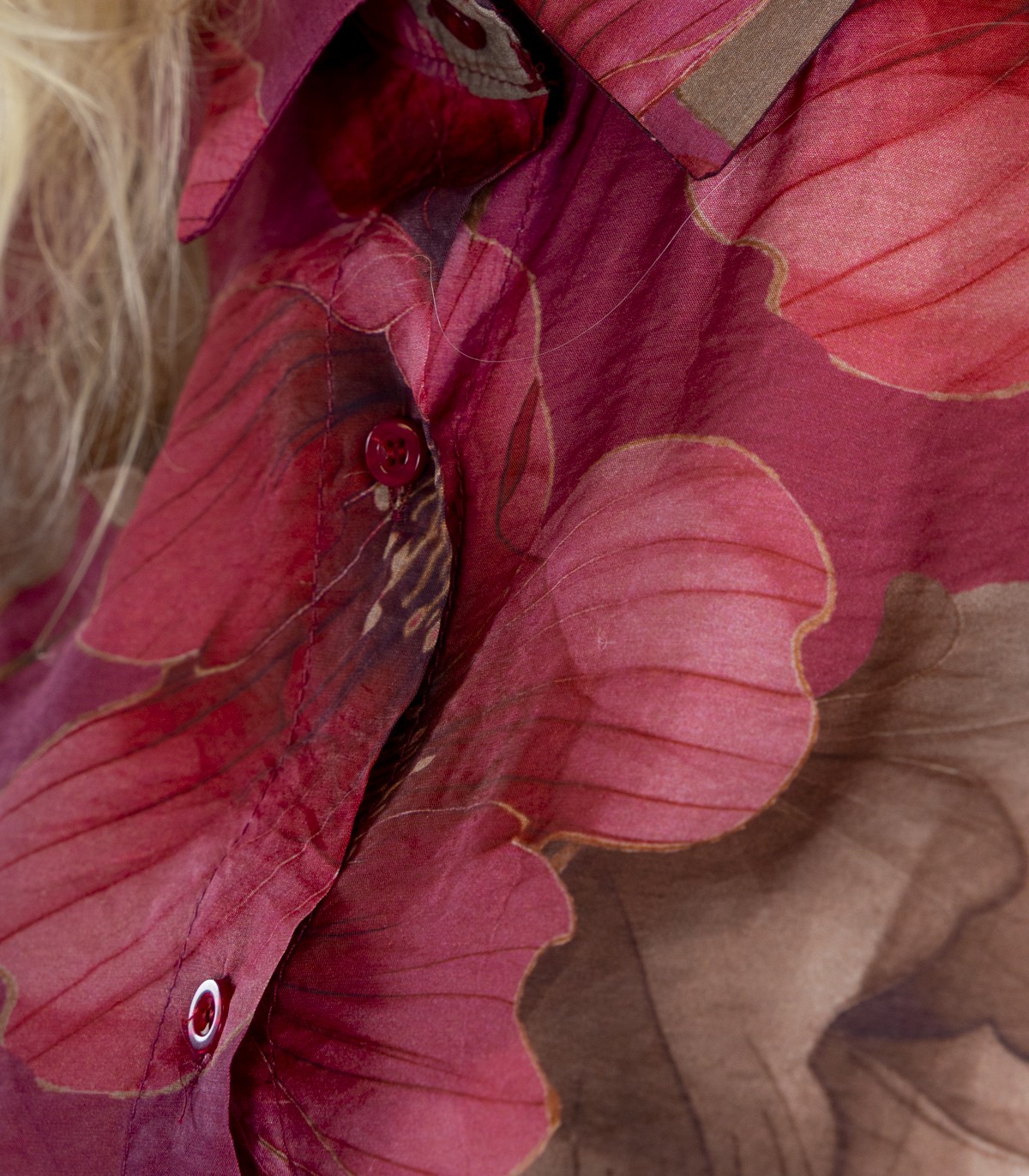 Viegla un gaisīga sieviešu blūze Zabaione ir ideāli piemērota gan ikdienas valkāšanai, gan īpašiem gadījumiem. Iespaidīgi un sievišķīgi lieli ziedi un klasisks piegriezums rada harmonisku tēlu.