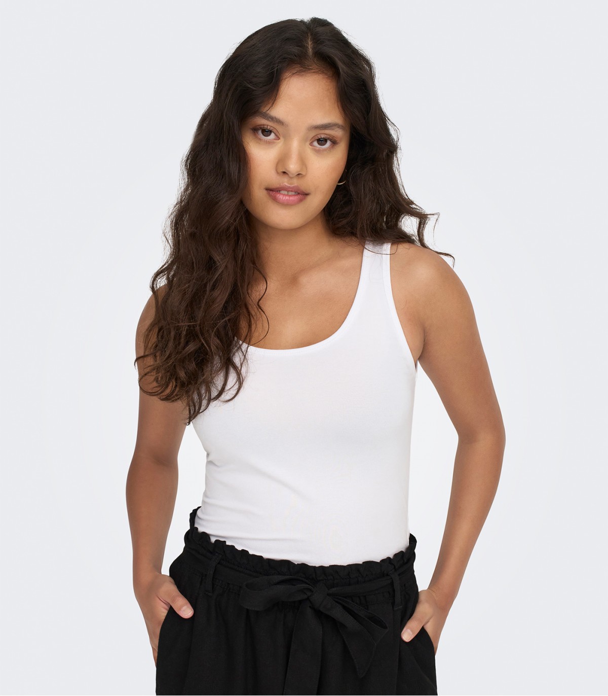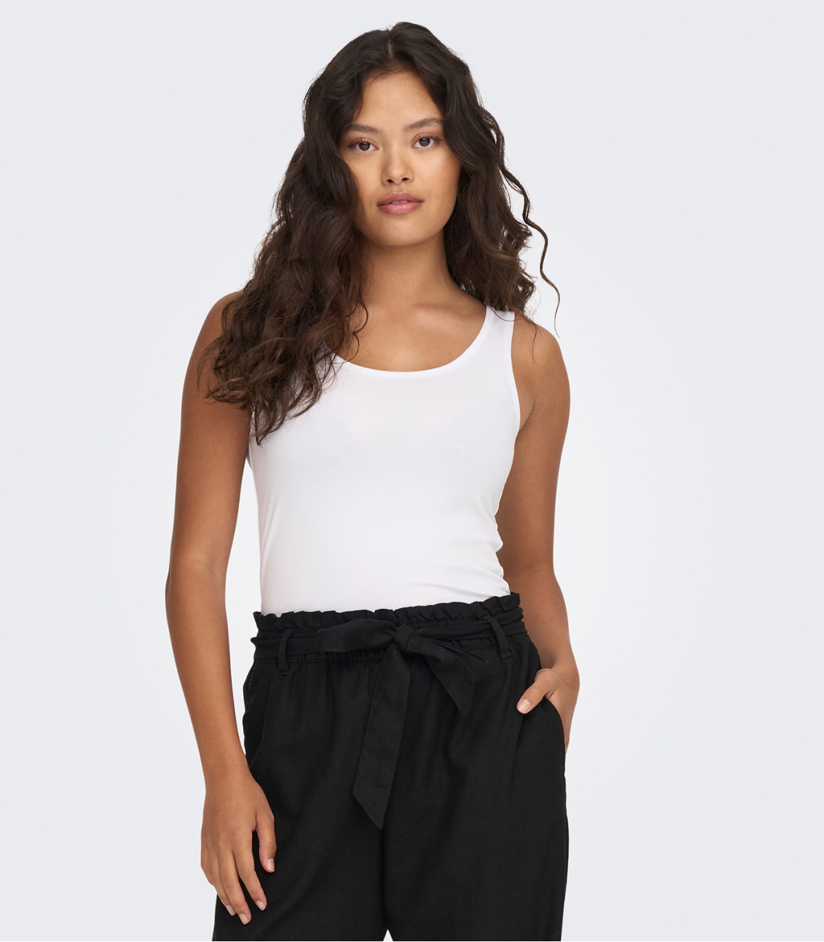 Klasisks, pieguļošs sieviešu tops ar apaļu kakla izgriezumu. Šis bezpiedurkņu modelis ir lieliski piemērots valkāšanai atsevišķi vai vairākās kārtās.