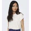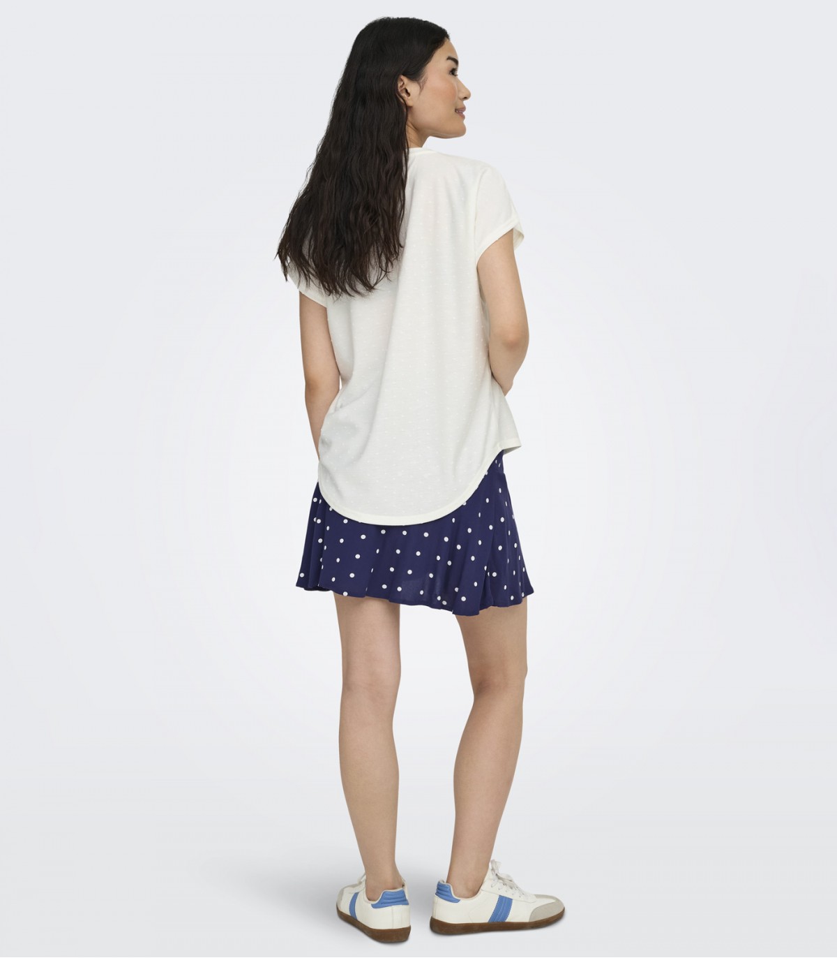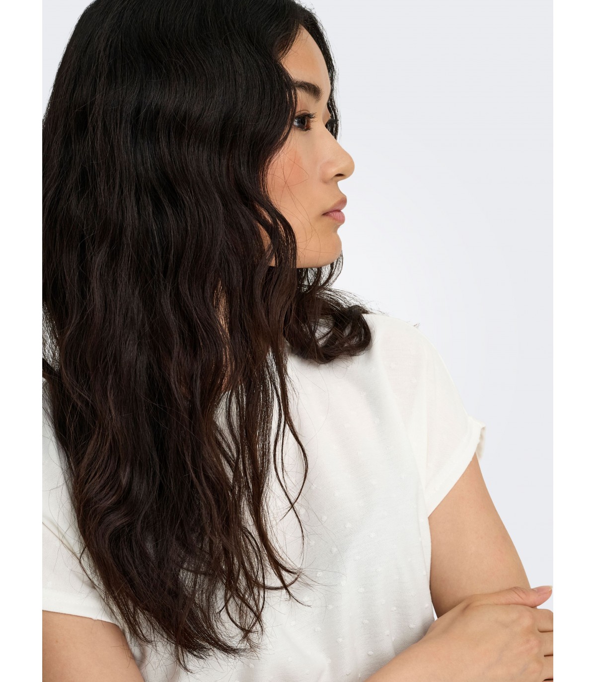 Šī sieviešu blūze ir vienkāršs un daudzpusīgs apģērba gabals ikdienas valkāšanai. Izgatavota no mīksta, viegla auduma ar patīkamu drapējumu un skaistu zīdainu tekstūru, tā ir ērta pret ādu un graciozi krīt pāri figūrai. Klasiskais apaļais kakla izgriezums un īsās piedurknes ļauj to viegli kombinēt ar džinsiem, biksēm un svārkiem jebkurā stilā.