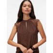 Vero Moda viegls, zīdains sieviešu tops ir izsmalcināts un sievišķīgs risinājums jūsu garderobei. Augšā ir mežģīņu piedurknes, kas piešķir romantisku pieskārienu. Apaļš kakla izgriezums ar asaru kakla izgriezumu priekšpusē piešķir topam izsmalcinātu izskatu, izceļot kakla izgriezumu. Pogas aizdare aizmugurē padara to ērti un viegli uzvelkamu. Izgatavots no zīdaina materiāla, kas ir patīkams pieskarties un nodrošina komfortu visas dienas garumā. Šis tops ir ideāli piemērots, lai radītu elegantu un stilīgu izskatu ballītē, randiņā vai citā īpašā gadījumā, piešķirot jūsu izskatam unikālu šarmu un šarmu.