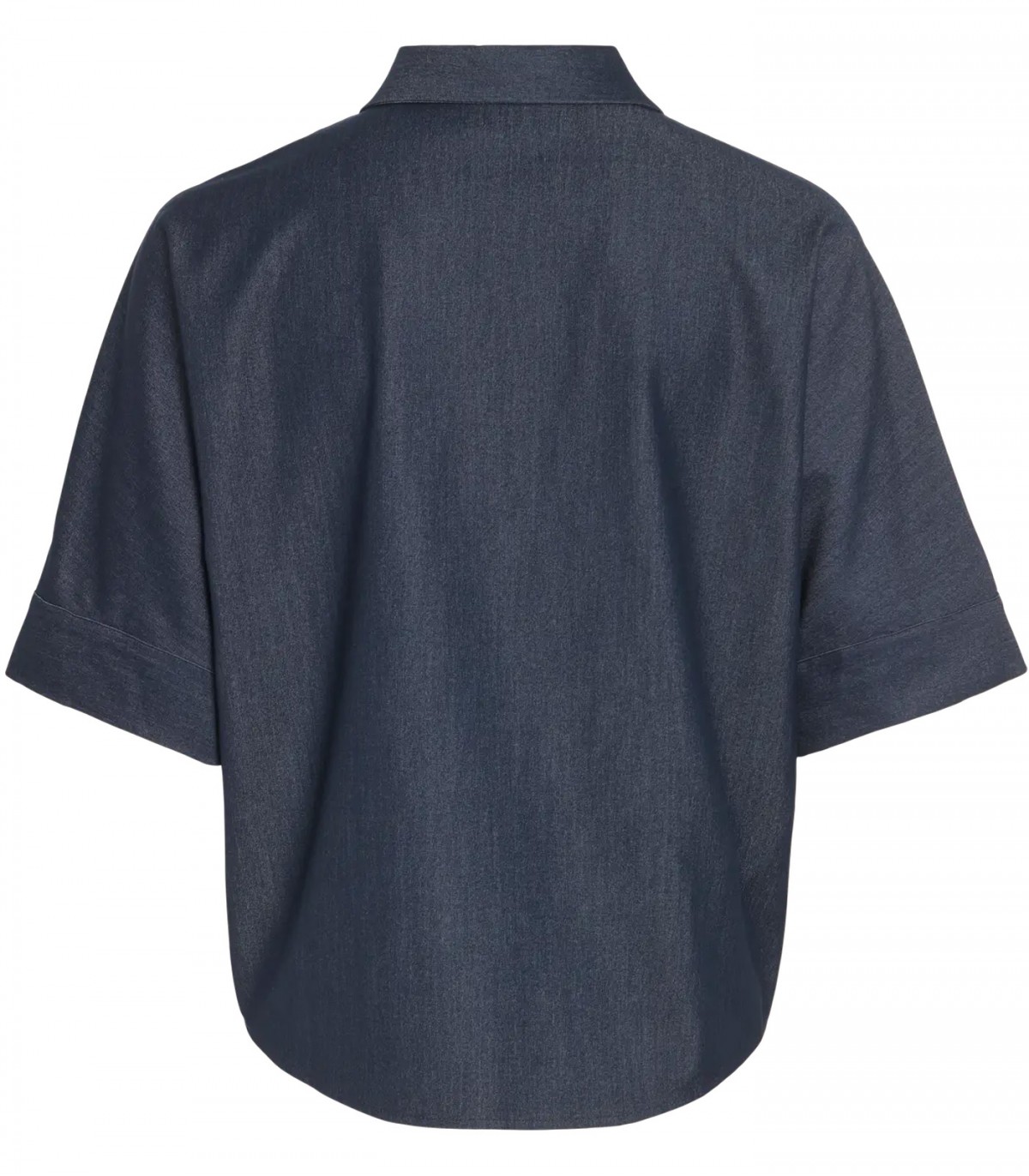 Šai tumši zilajai sieviešu blūzei ir minimālistisks dizains ar modernu un mūžīgu piegriezumu. Taisnais piegriezums nodrošina ērtu piegriezumu un to ir viegli kombinēt ar dažādiem garderobes elementiem.