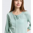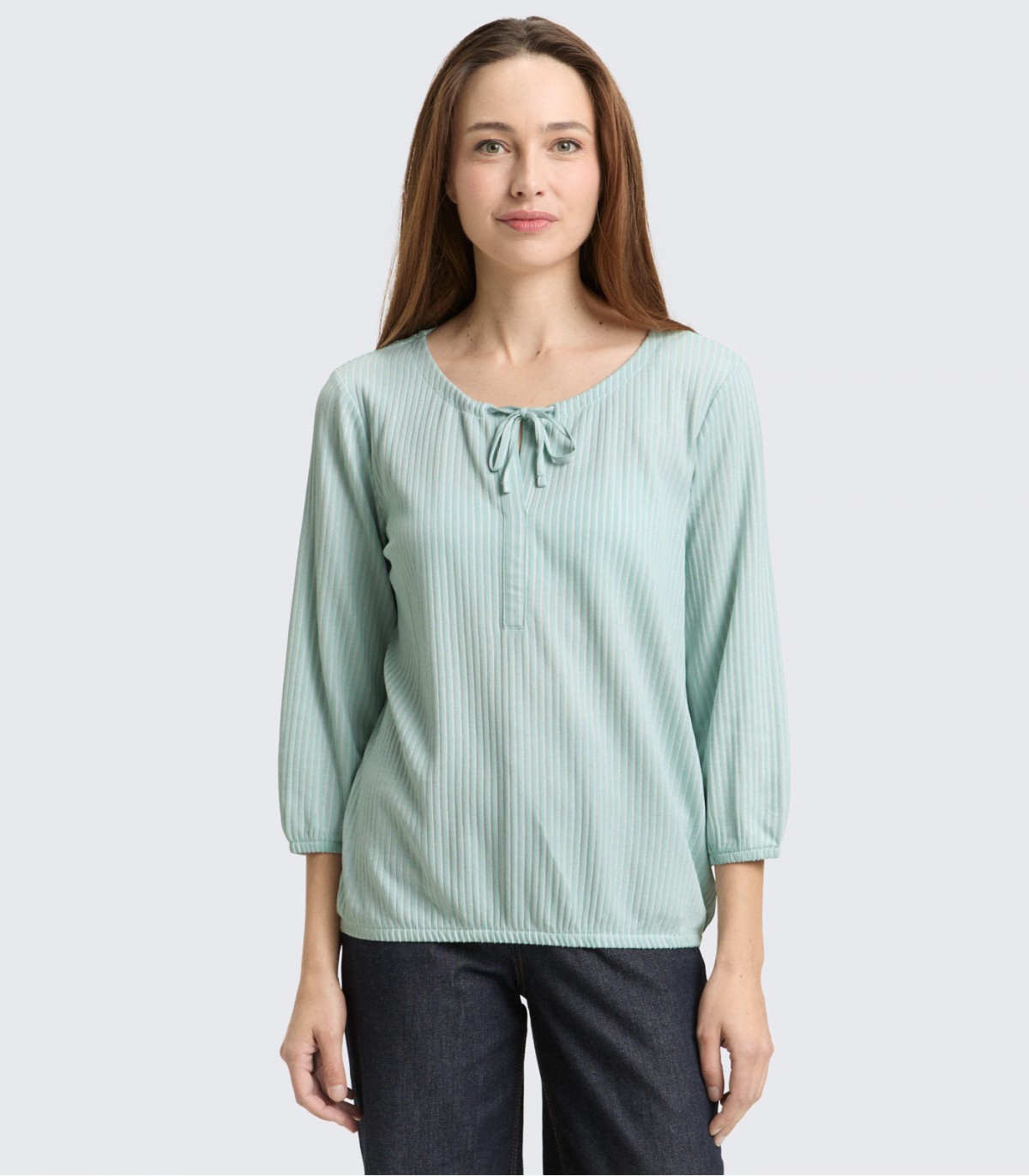 Šī sieviešu blūze ar ¾ piedurknēm un elastīgu jostasvietu ir lieliska izvēle stilīgam un ērtam ikdienas tēlam. Svītras piešķir dzīvīgumu, savukārt elastīgā jostasvieta nodrošina ērtu piegulšanu un glaimo figūrai.