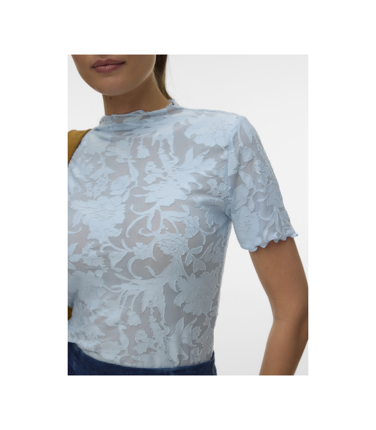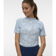 Šis Vero Moda sieviešu tops ir darināts no viegla materiāla un tam ir vienkāršs siluets ar apaļu apkakli. Ar īsām piedurknēm un nedaudz caurspīdīgu apdruku tas ir ērts un stilīgs ikdienas valkāšanai. To var viegli kombinēt ar džinsiem, svārkiem un biksēm.