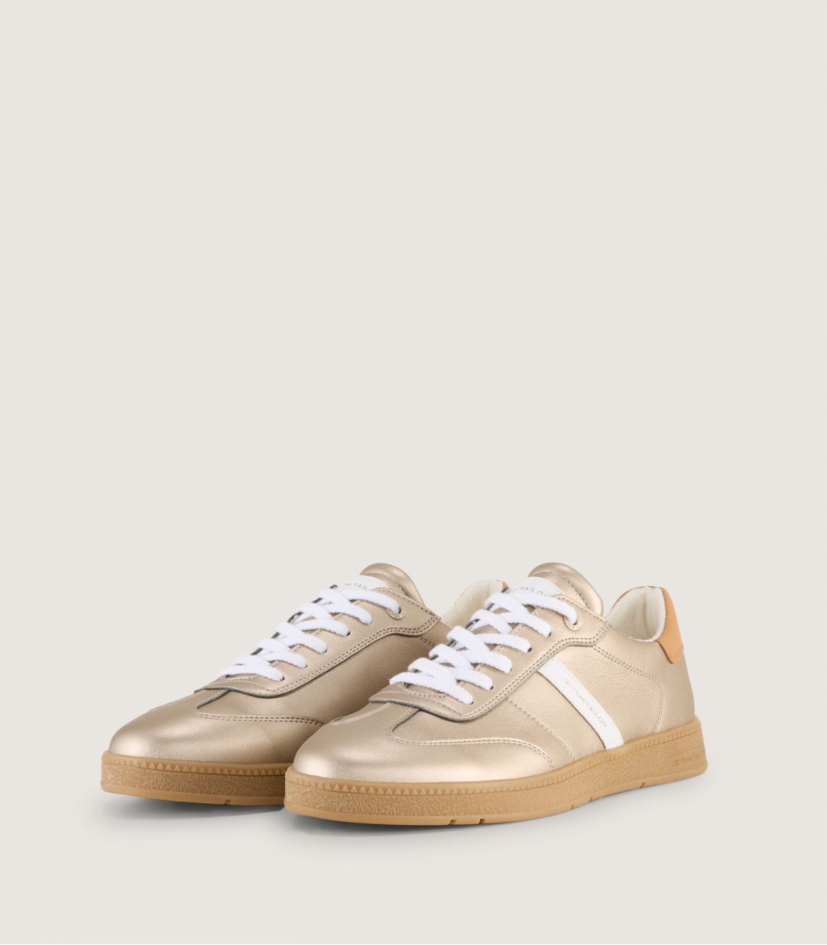Šīs sieviešu ikdienas kurpes ir izgatavotas no mirdzošas mākslīgās ādas un apvieno komfortu ar mūsdienīgu dizainu. Tām ir neliels logotips un izturīga gumijas zole. Viegli kopjamais materiāls padara tās par praktisku izvēli ikdienas valkāšanai.