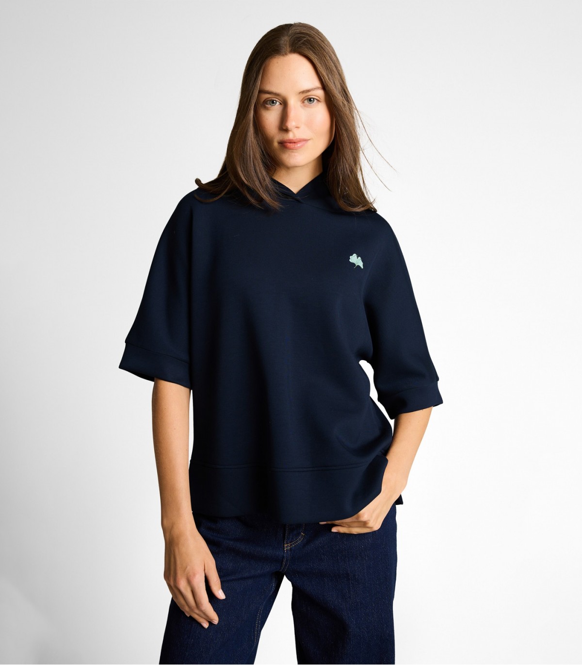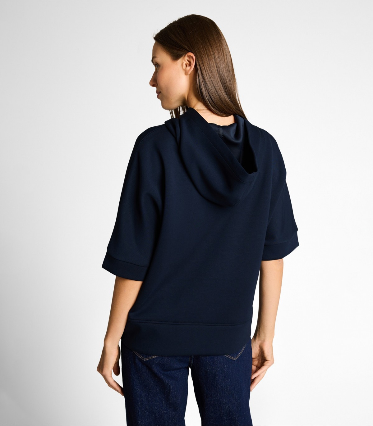Tom Tailor sieviešu kapučjakas sporta krekls ir moderna un ērta ikdienas valkāšanai. Izgatavots no grumbu izturīga, elastīga, neoprēnam līdzīga auduma.