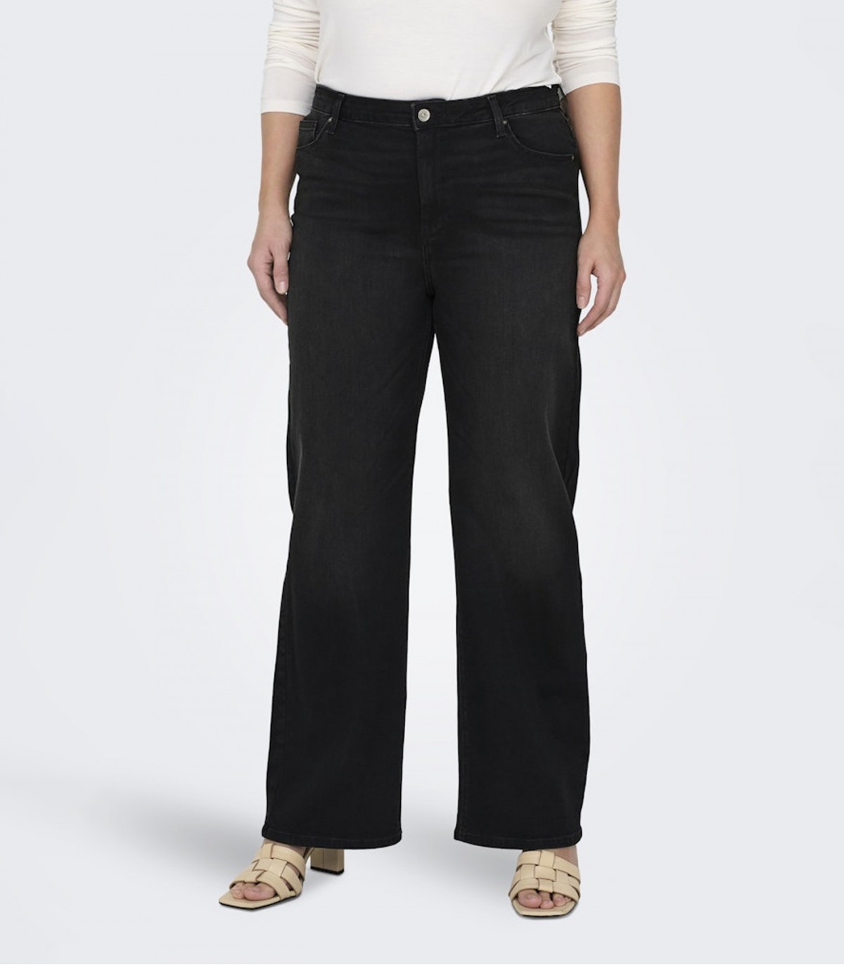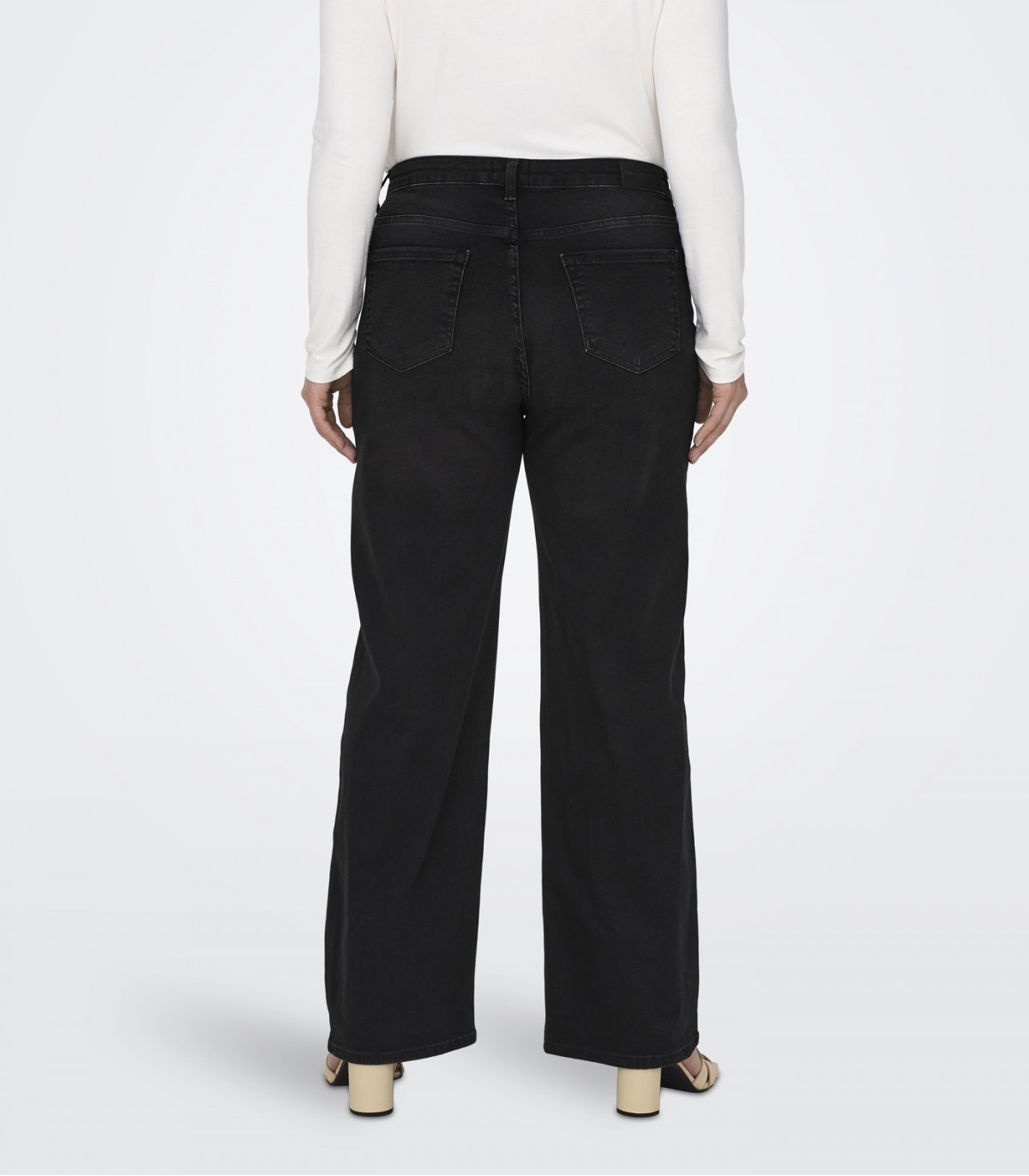 Ērtas un modernas melnas džinsa bikses ar brīvu piegriezumu. Augstā jostasvieta un platais piegriezums rada gludu siluetu, kas ir ideāli piemērots ikdienas valkāšanai. Elastīgais audums nodrošina komfortu visas dienas garumā.