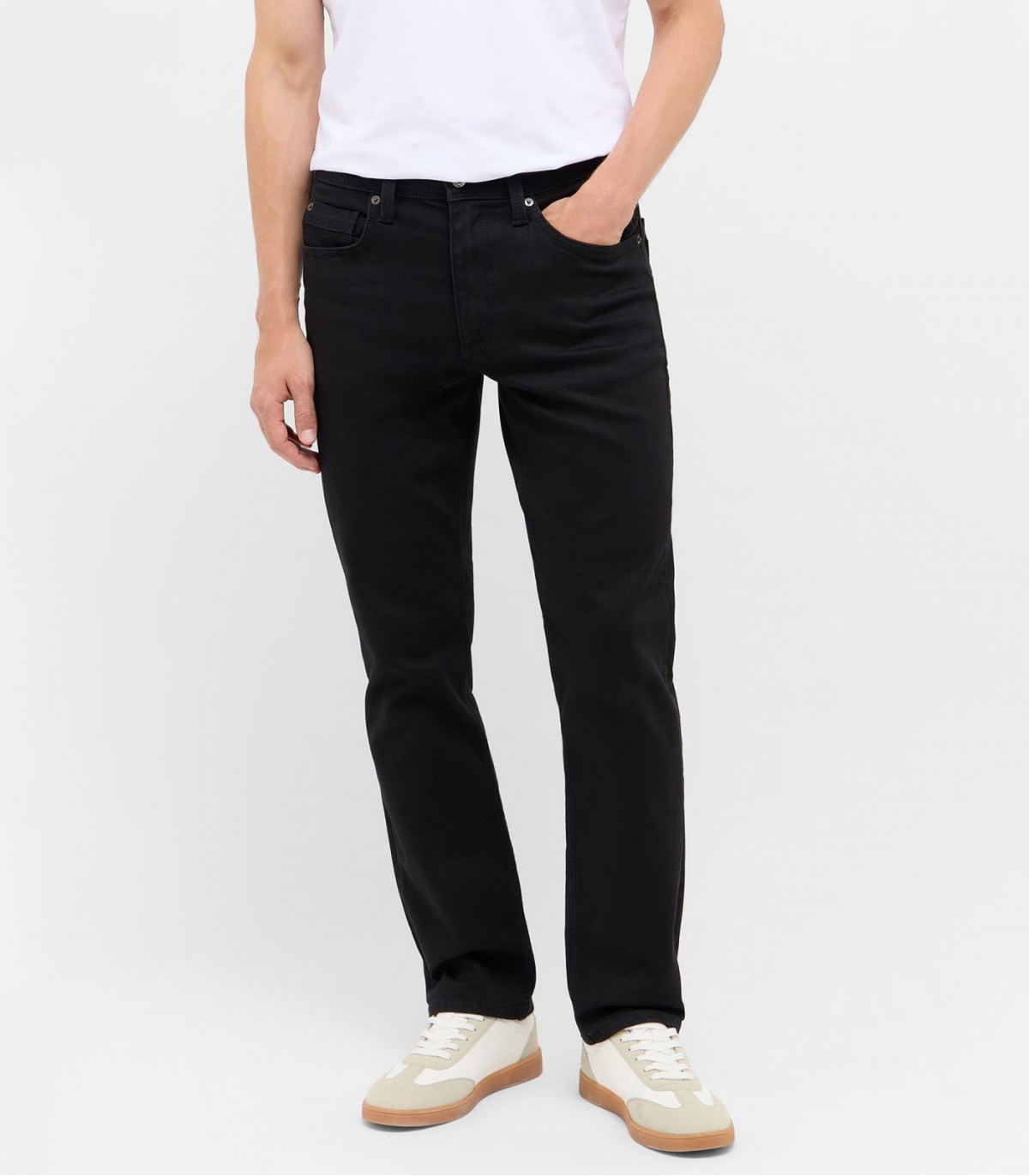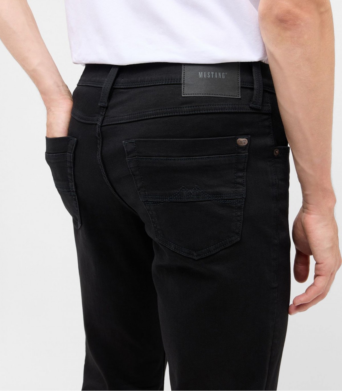 Klasiska dizaina un ērti melni Mustang džinsi. Vašingtonas stila biksēm ir vidēji augsts jostasvietas augstums un taisns piegriezums, kas padara tās piemērotas gan ikdienas valkāšanai, gan svinīgākiem gadījumiem. Elastīgais kokvilnas maisījums nodrošina komfortu un izturību.