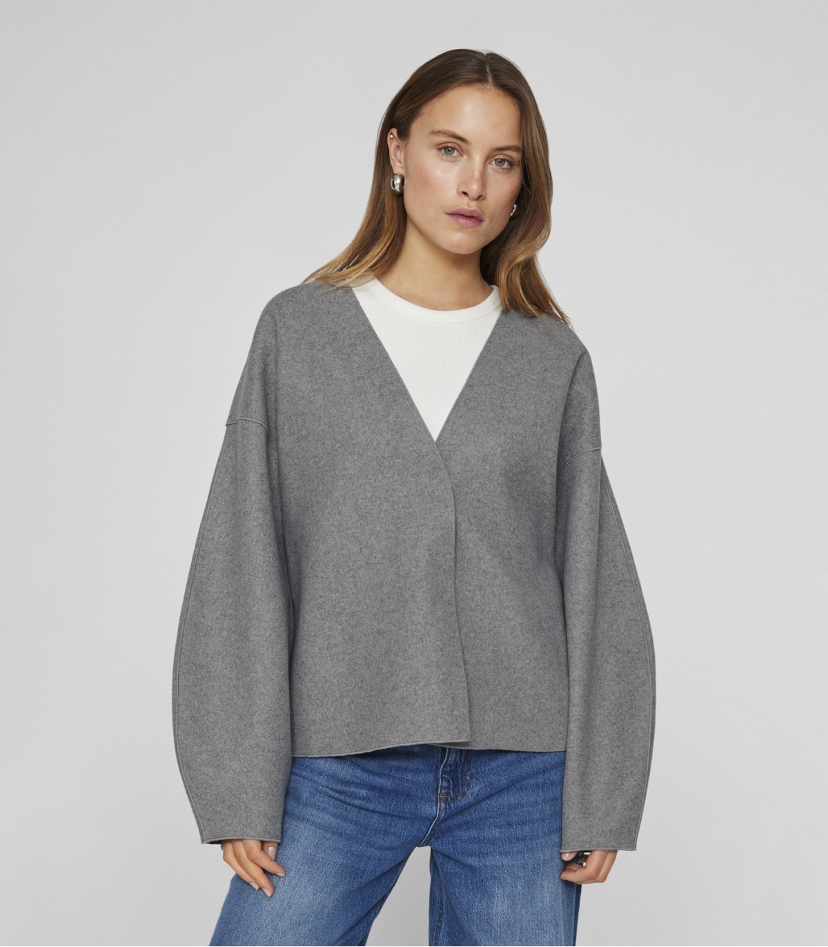 Šis sieviešu jauktā auduma kardigans ir mīksts, ērts un lieliski piemērots slāņošanai. Tam ir V veida kakla izgriezums un vienas pogas aizdare, kas piešķir tam tīru, modernu izskatu.