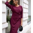 Eleganta kleita ar mezglu sānos, kas izceļ sievišķīgo siluetu. Kleitai ir 3/4 piedurknes, apaļš kakla izgriezums un šķēlums sānos, kas piemērots gan īpašiem gadījumiem, gan ikdienai. Vidēja garuma modelis ir ērts un daudzpusīgs.