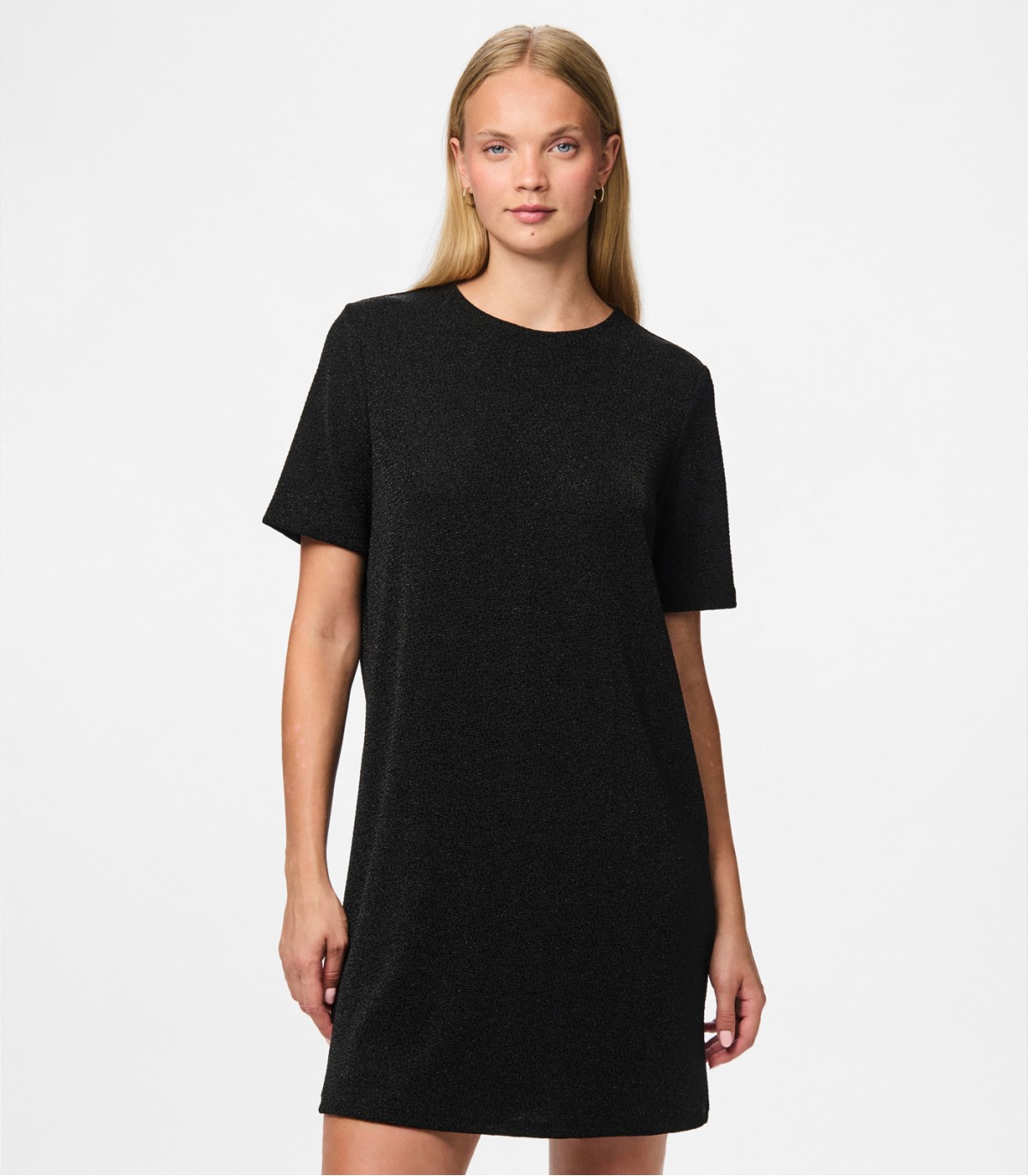 Vienkārša, bet spilgta melna kleita, kas ir lieliski piemērota gan ikdienai, gan svinīgiem pasākumiem. Viegli mirdzošais materiāls piešķir sievišķīgu pieskārienu, savukārt taisnais piegriezums nodrošina komfortu. Kombinācijā ar augstpapēžu kurpēm, zābakiem vai kedām šī kleita ir ideāli piemērota jebkuram gadījumam.