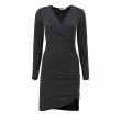 Izteiksmīga melna kleita ar pieguļošu V veida kakla izgriezumu. Dramatiskas ieloces izceļ figūru. Elastīgais un ērtais audums ir piemērots gan formālam, gan vakara apģērbam.