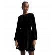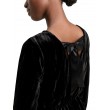 Samta mini kleita ar sievišķīgu atvērtu muguru un dekoratīvu jostu. Mīkstais audums un elastīga jostasvieta nodrošina ērtu piegulšanu.