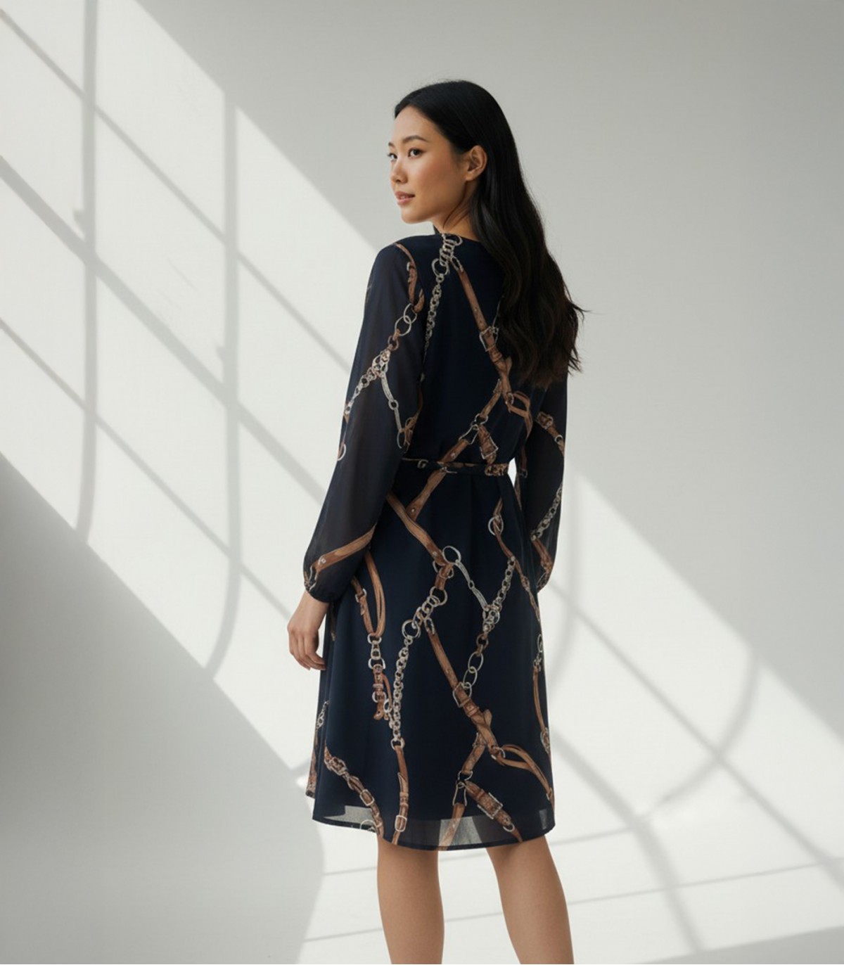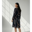 Melna kleita ar garām piedurknēm un izteiksmīgu apdruku. Taisnu piegriezumu akcentē noņemama josta jostasvietā. Vieglais, gaisīgais, skaisti drapējošais audums nodrošina komfortu.
