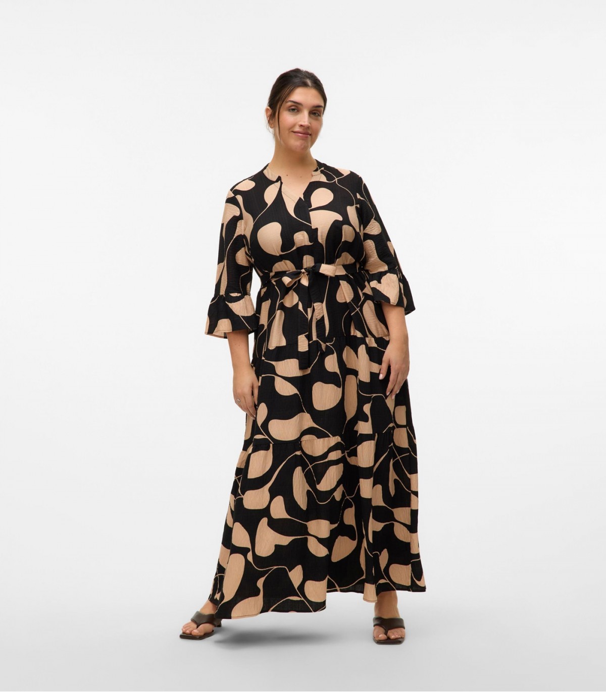 Vero Moda Curve sieviešu garā kleita ir darināta no viegla viskozes auduma un īpaši paredzēta sievietēm ar apaļīgām auguma aprisēm. Tā skaisti izceļ siluetu un nodrošina ērtu piegulumu.