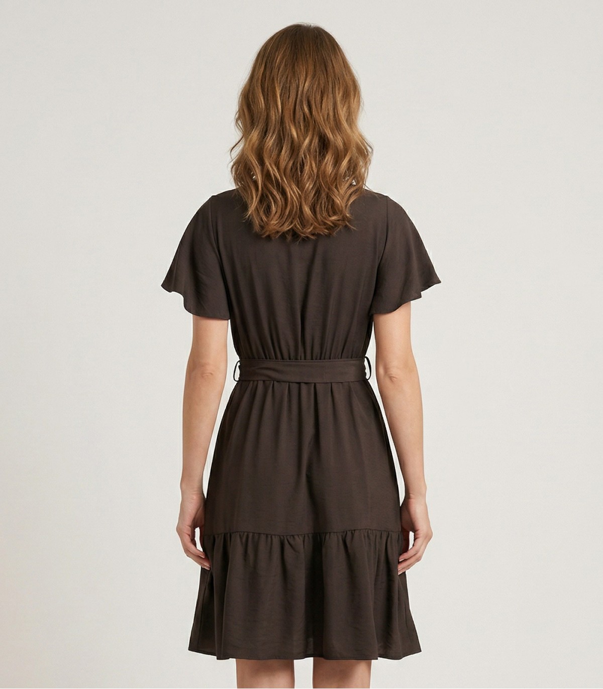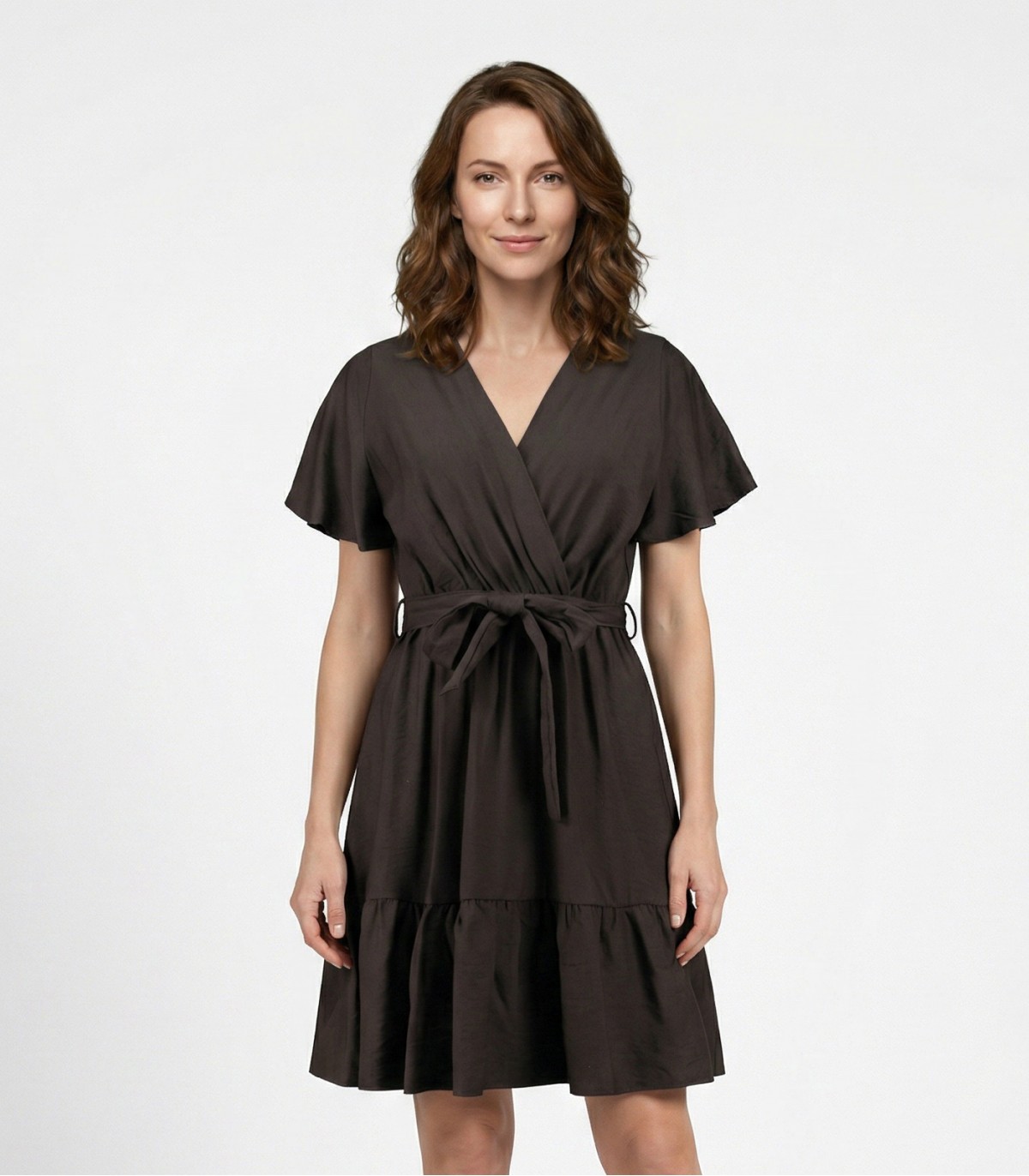 Zabaione sieviešu īsā kleita ar V veida kakla izgriezumu ir viegla un sievišķīga, kas lieliski piemērota gan ikdienai, gan vasarai. Brīvais piegriezums un maigās līnijas rada komfortu un izceļ siluetu.