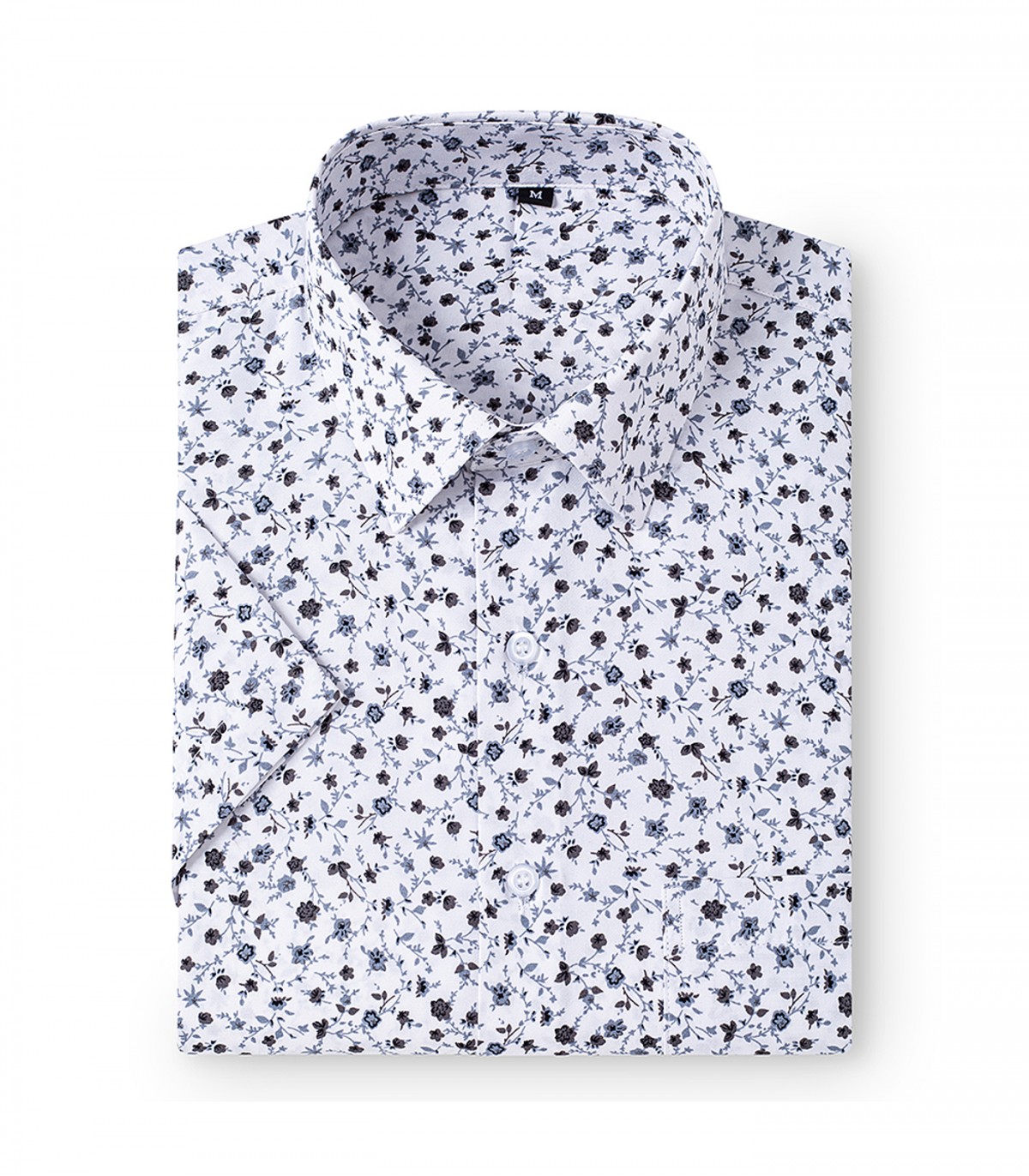 Klasisks vīriešu krekls no auduma ar ziedu rakstu. Taisns piegriezums un apkakle ir lieliski piemērota gan ikdienas valkāšanai, gan vasaras pasākumiem. Tam ir krūšu kabata un pogas aizdare priekšpusē.