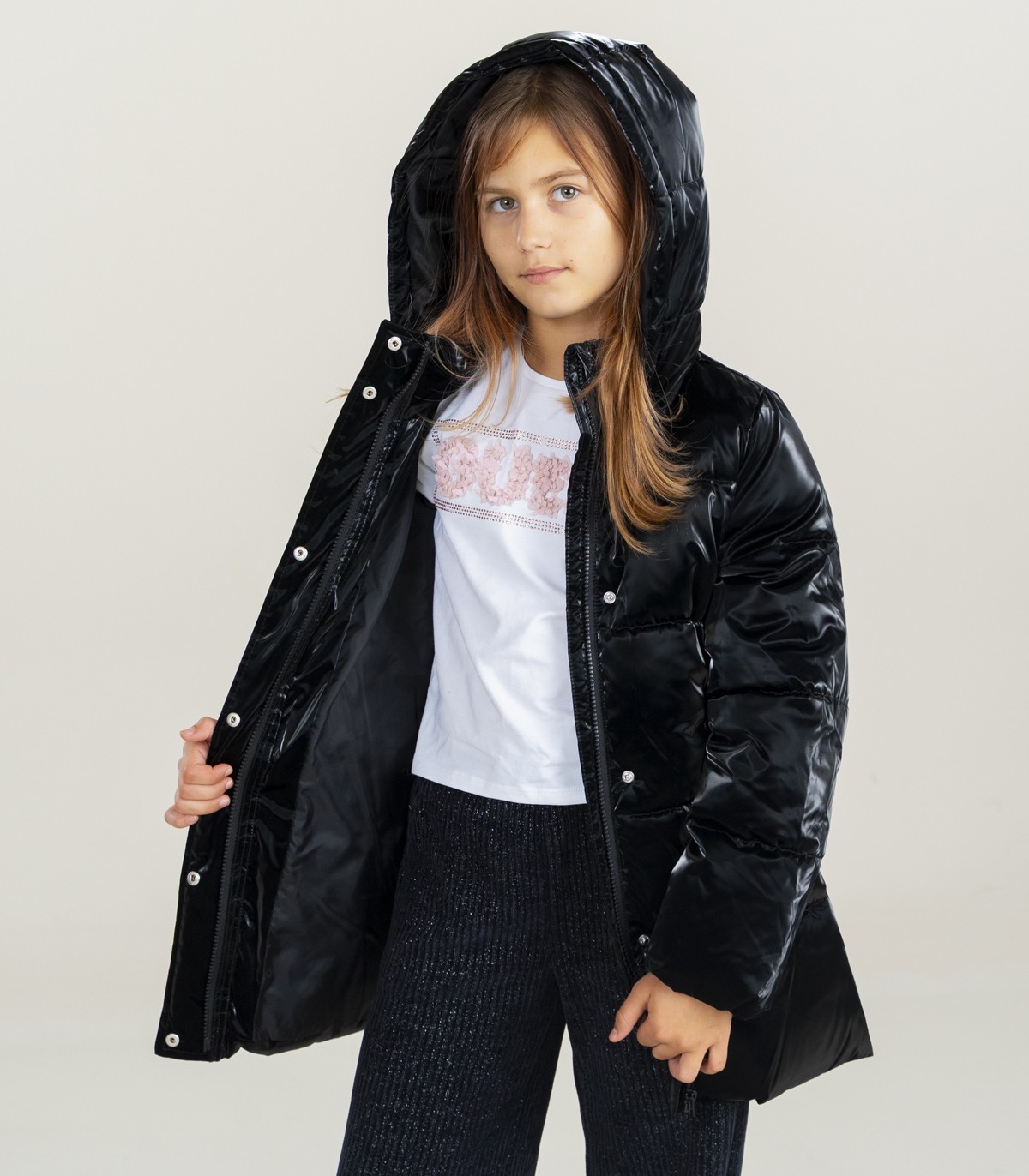 Stilīga un praktiska stepēta jaka KIDS ONLY ir radīta īpaši meitenēm, kuras novērtē komfortu un modi. Izgatavota no viegla, nedaudz spīdīga materiāla, tā izskatās moderna un iespaidīga. Pagarinātais siluets, augstā apkakle, kapuce un josta jostasvietā nodrošina papildu aizsardzību no aukstuma un vēja, kā arī ļauj pielāgot piegriezumu figūrai.