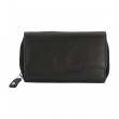 Sieviešu ādas maks ar atsevišķu nodalījumu monētām ar rāvējslēdzēju. Priekšpusē ir nodalījumi kartēm, nodalījumi dokumentiem un banknotēm ar spiedpogu aizdari. Aizmugurē ir atsevišķs nodalījums kartēm ar caurspīdīgu kabatu ar spiedpogu aizdari.