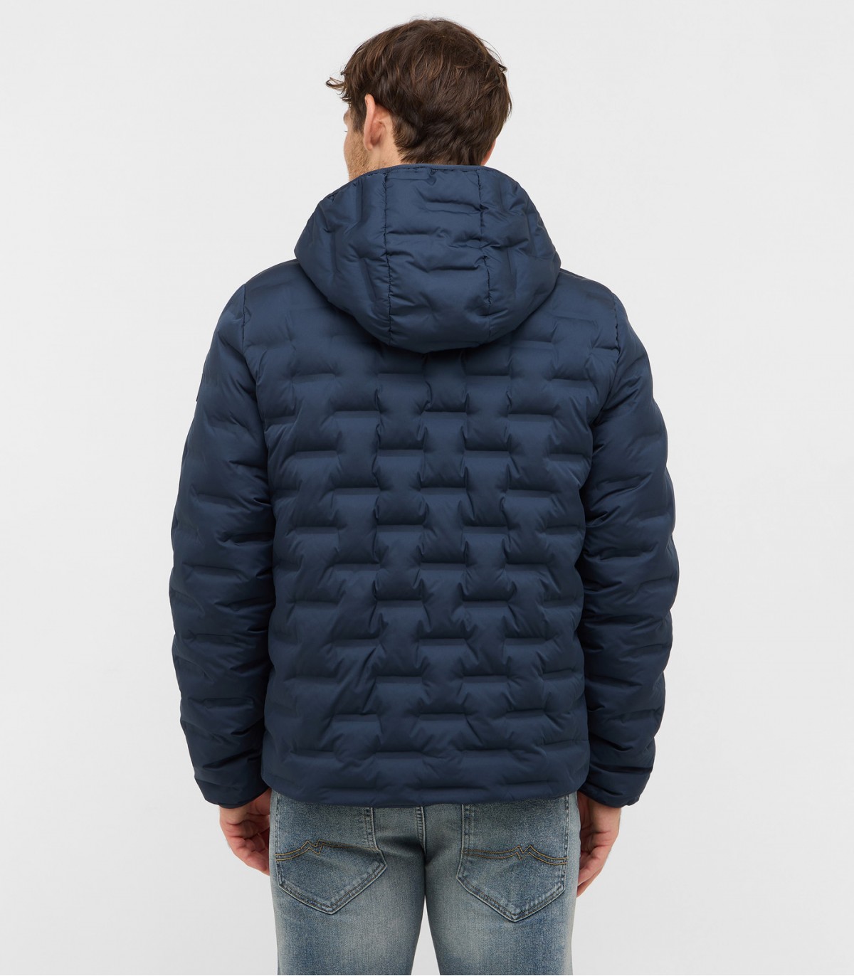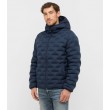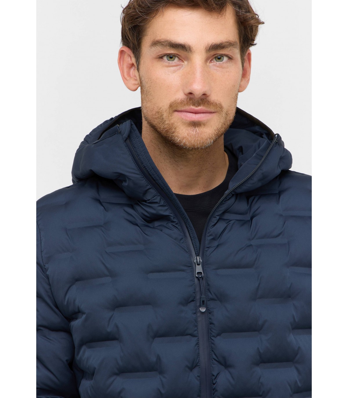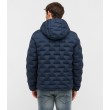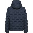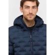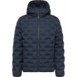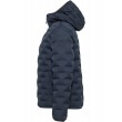 Šī tumši zilā stepētā dūnu jaka ar kapuci un rāvējslēdzēja aizdari apvieno modernu dizainu un inovatīvu tehnoloģiju: tradicionālo vīļu vietā auduma slāņi ir savienoti, izmantojot mērķtiecīgu karstumu. Tas nodrošina gludu, elegantu apdari un maksimālu funkcionalitāti. Papildu vīļu neesamība ļauj jakai saglabāt izcilu vieglumu un uzlabot vēja un ūdens izturību.