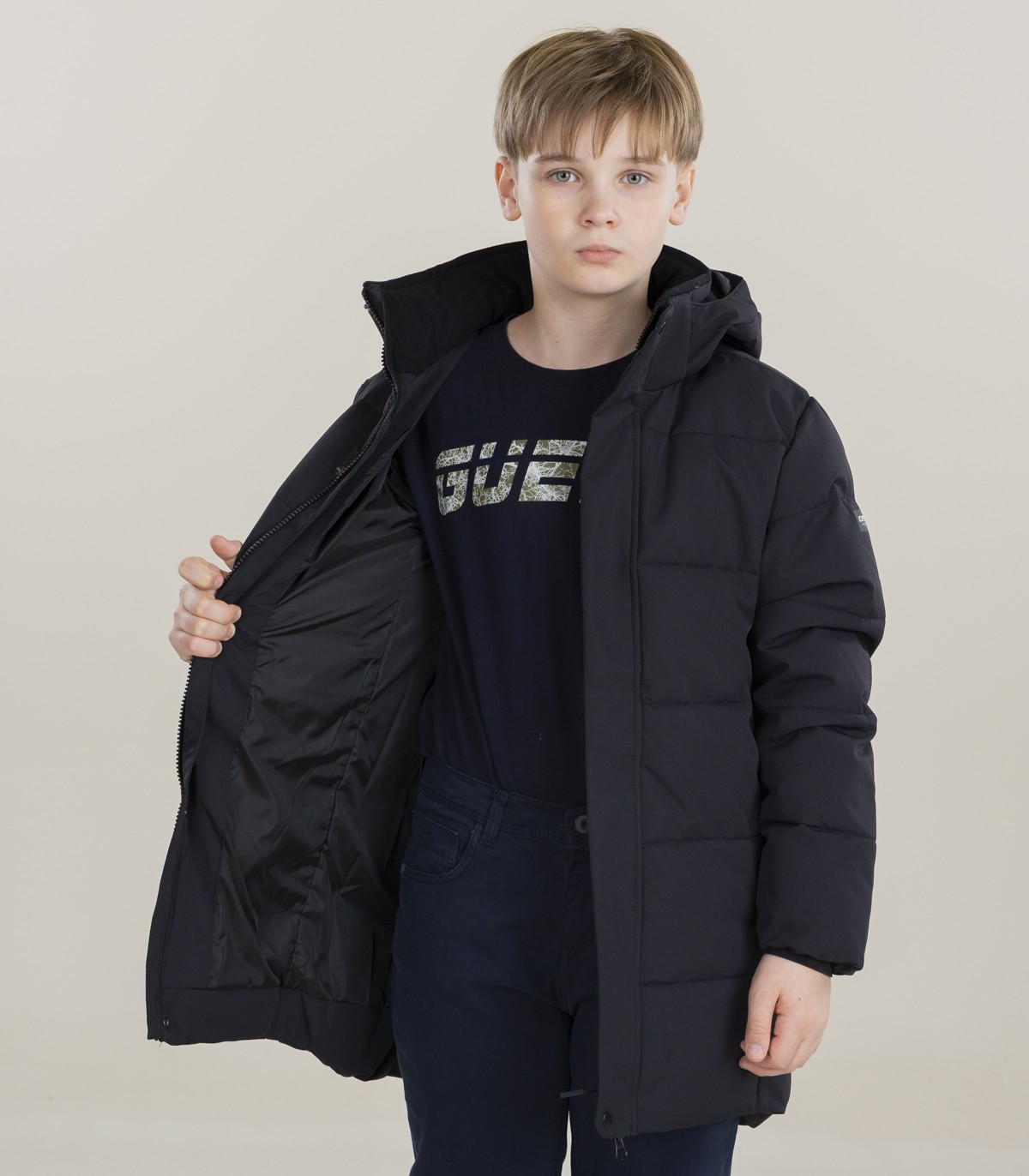 Praktiska Icepeak ziemas jaka zēniem, kas lieliski piemērota aukstām dienām. Jaka ir izgatavota no divslāņu auduma ar ūdensnecaurlaidīgu membrānu.