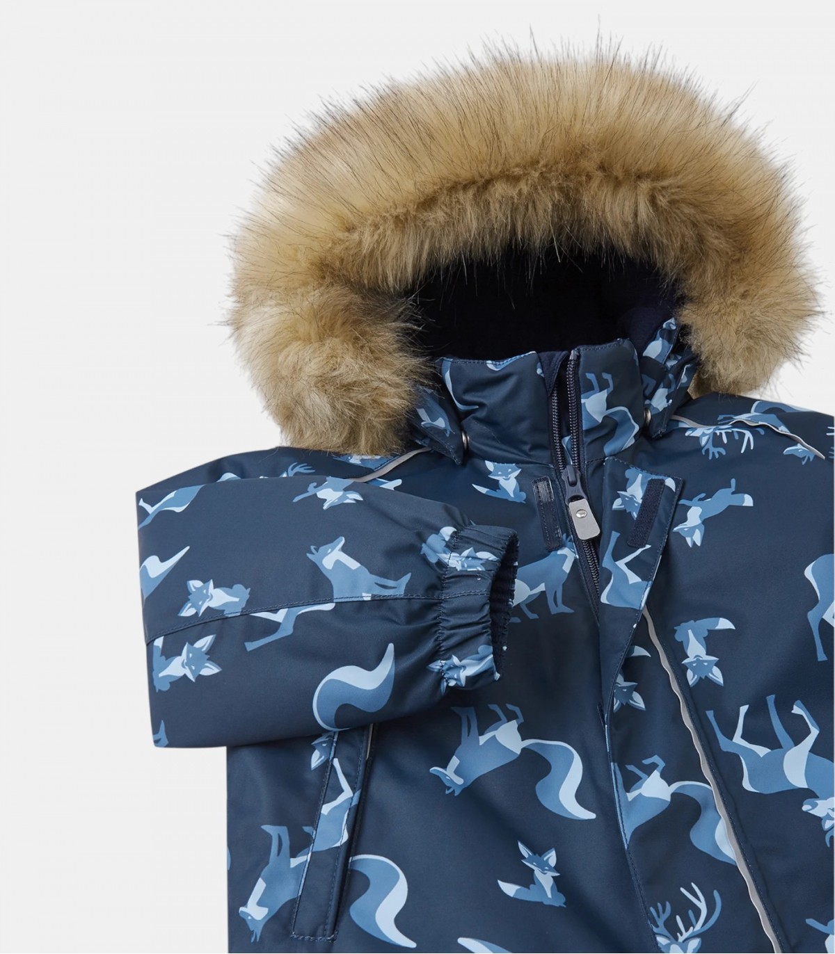 Bērnu krāsainie, siltie Lappi ziemas kombinezoni ar noņemamu mākslīgās kažokādas apdari uz kapuces ir pilnībā izgatavoti no ūdensizturīga, elpojoša, izturīga, netīrumus atgrūdoša materiāla. Materiāls ir arī elpojošs un vēja necaurlaidīgs.