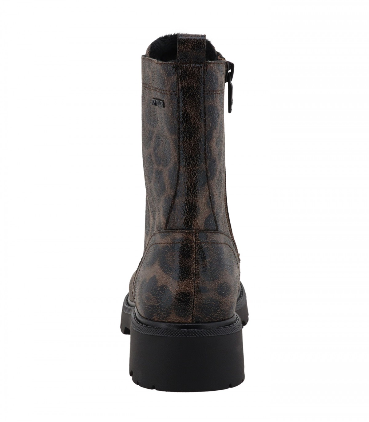 Stilīgi un ērti sieviešu zābaki ar leoparda apdruku. Virsma ir izgatavota no viegli kopjamas un izturīgas mākslīgās ādas. Izturīgā, profilētā zole nodrošina lielisku saķeri.