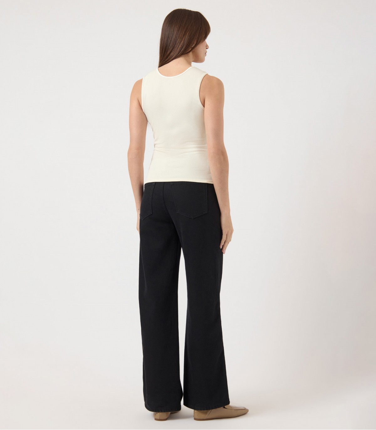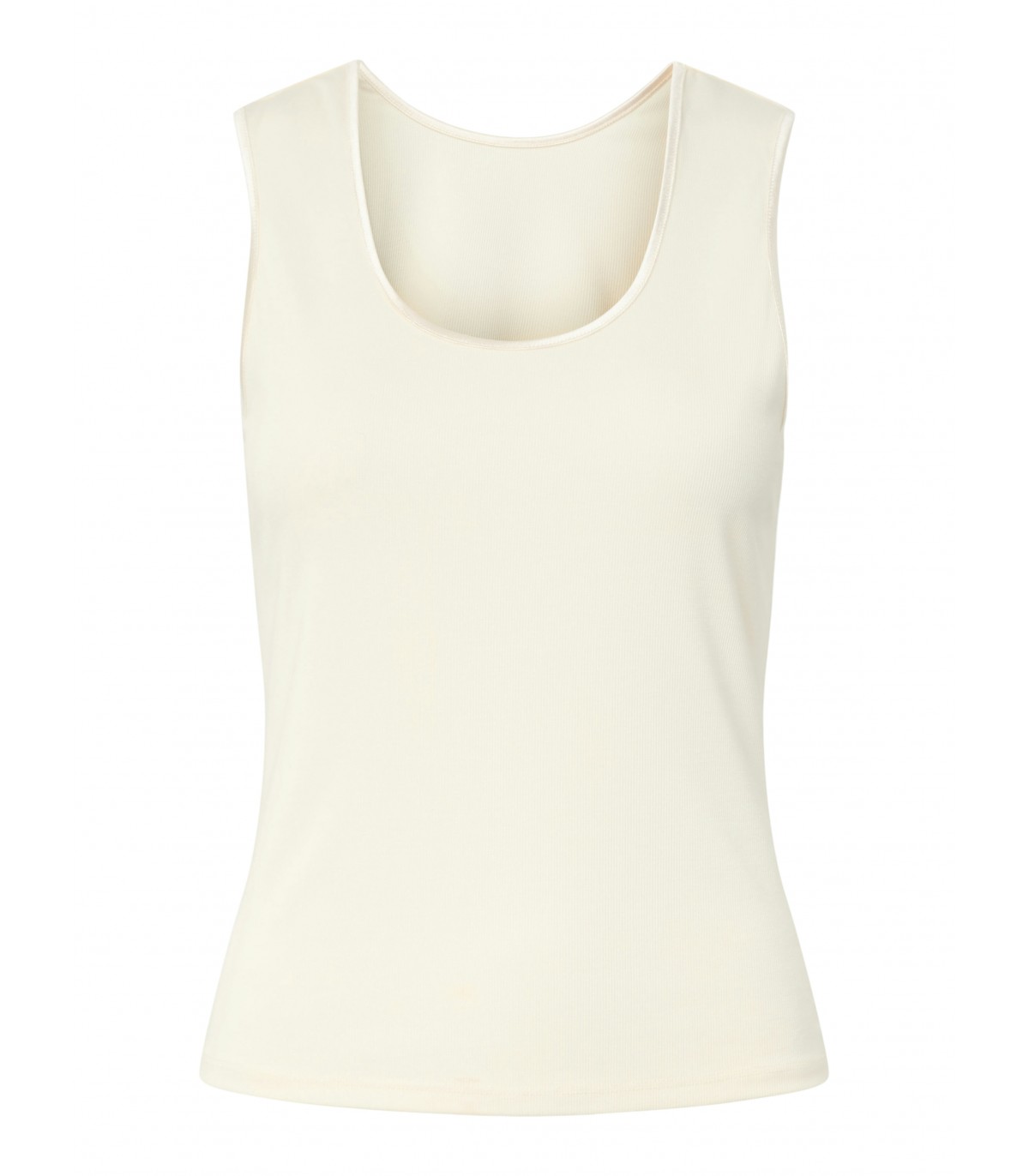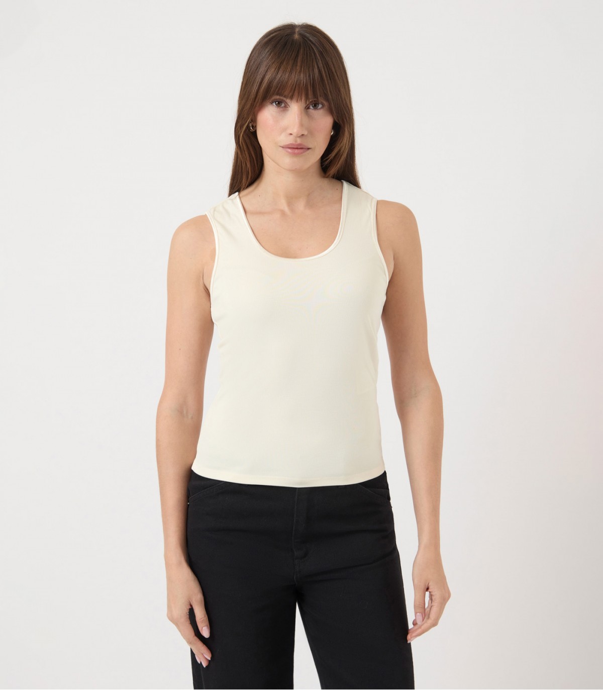 Женский топ-майка выполнен из мягкого эластичного материала в рубчик, который комфортно прилегает к фигуре и подчёркивает силуэт. Лаконичный дизайн и аккуратный округлый вырез делают модель универсальной базой для повседневного гардероба.