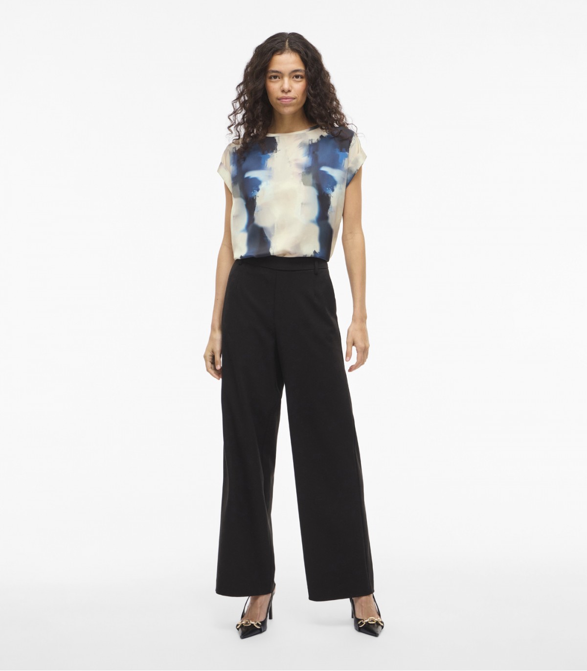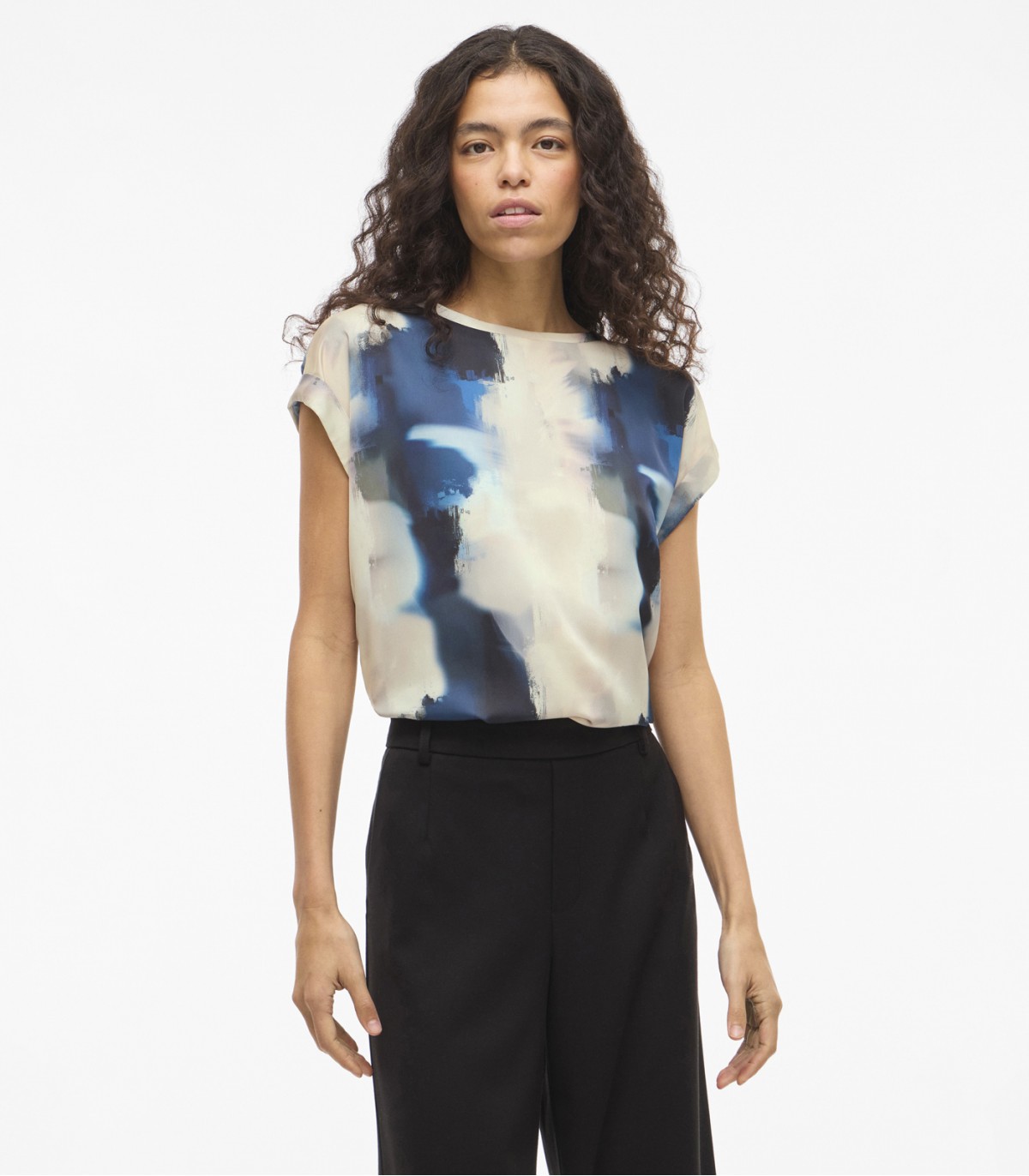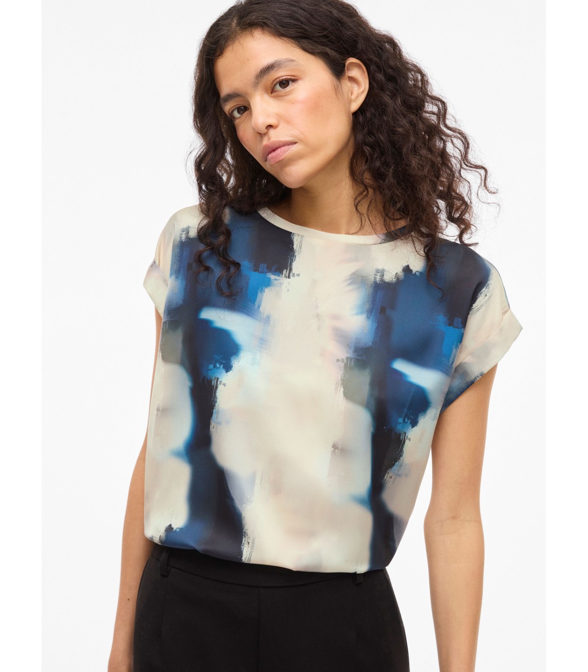 Женская блузка Vila выполнена из гладкого атласного материала. Модель украшена стильным принтом по всей поверхности, создающим выразительный акцент. Короткие рукава с аккуратными отворотами добавляют лёгкости и непринуждённости. Прямой крой обеспечивает комфортную посадку. Эта модель прекрасно подходит для создания как повседневных, так и более изысканных сочетаний.
