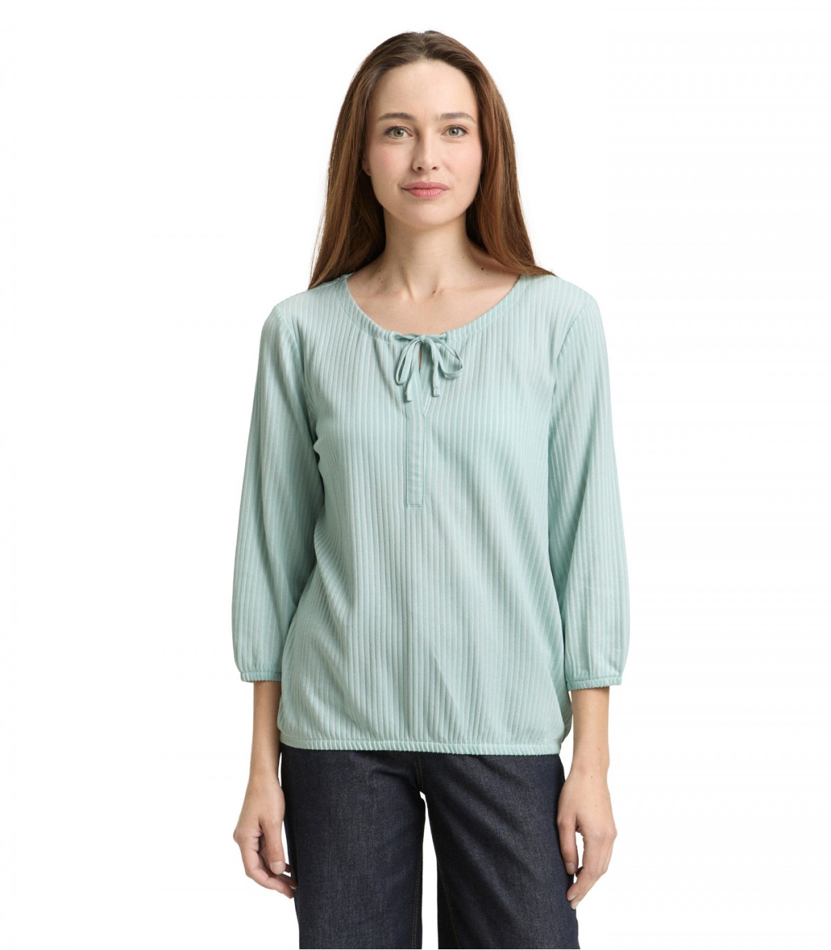 Женская блуза с 3/4 рукавами и эластичным поясом на подоле - отличный выбор для создания стильного и комфортного образа на каждый день. Полоска придает оживленность, а эластичный пояс обеспечивает хорошую посадку и подчеркивает фигуру.