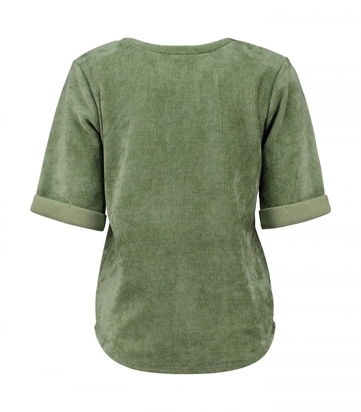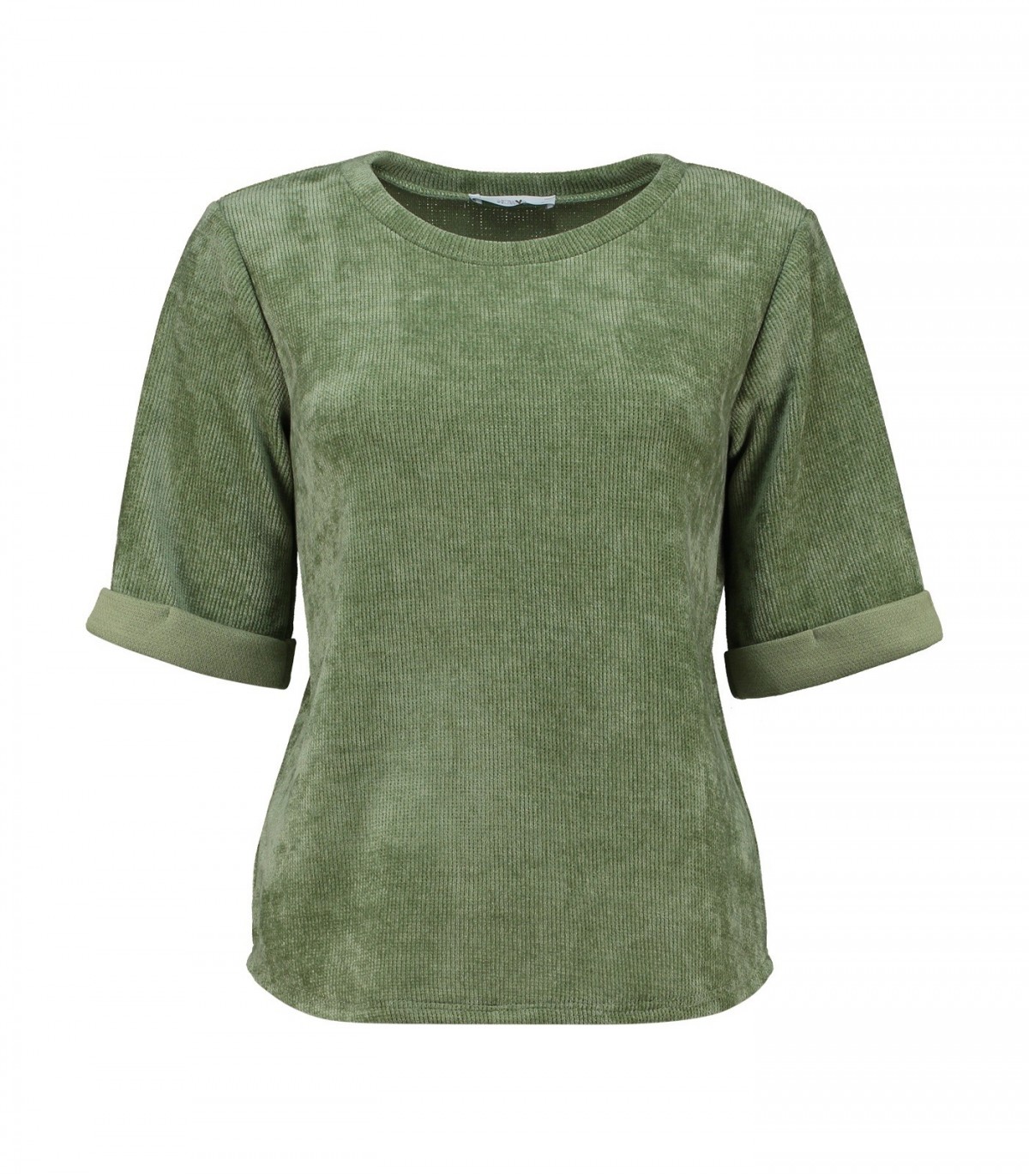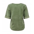 Блузка бежевого цвета из мягкой и слегка текстурированной ткани удобна для повседневной носки. Короткие подвернутые рукава и классический круглый вырез создают простой, но женственный образ.