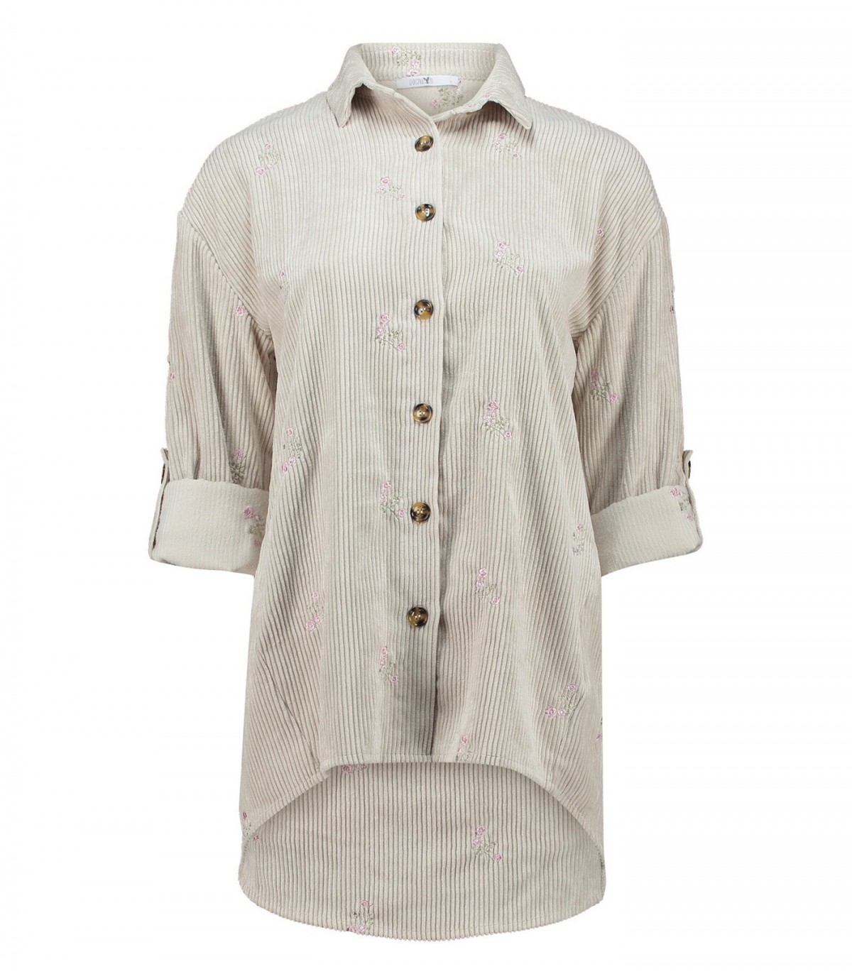 Женская блузка Hailys удлиненного кроя с вышитым цветочным узором. Застежка на пуговицы спереди и закатанные рукава. Удобный крой подходит для повседневной носки.