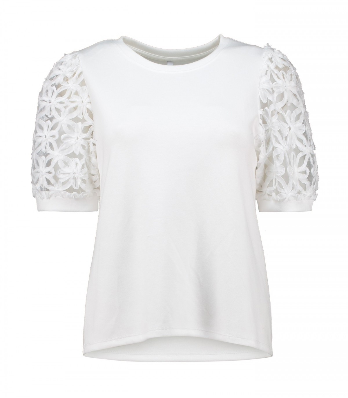 Классическая женская блузка Hailys с прозрачными рукавами с цветочным узором. Однотонный крой уравновешивает кружевные рукава и создает чистый и женственный образ.