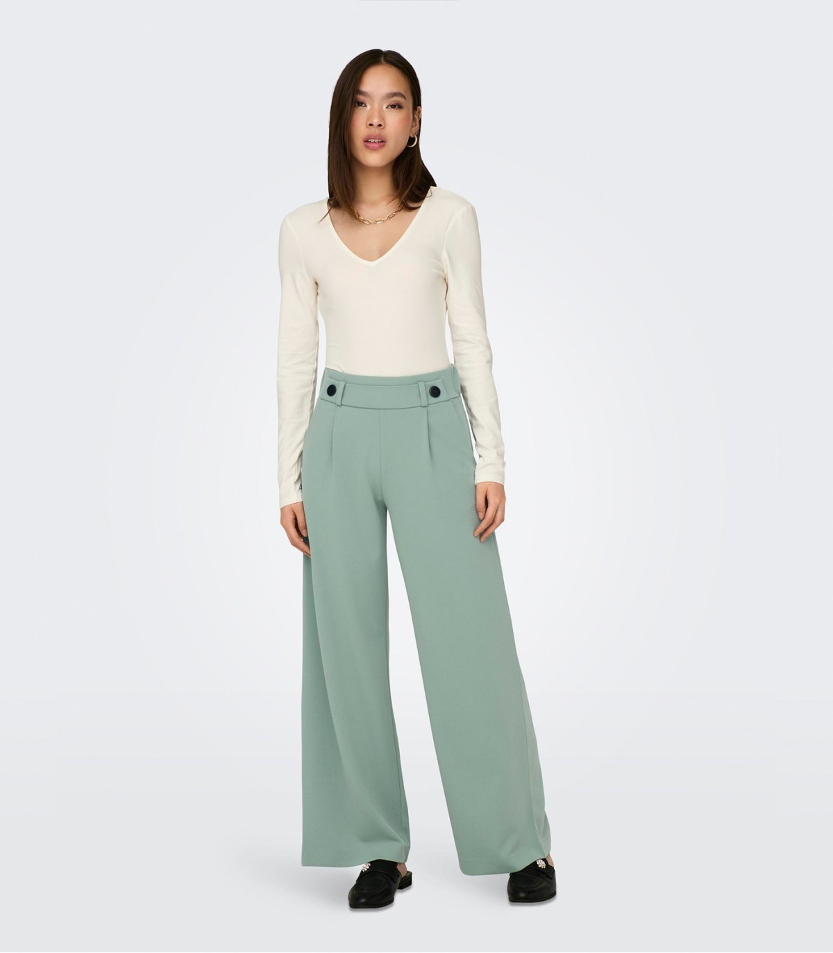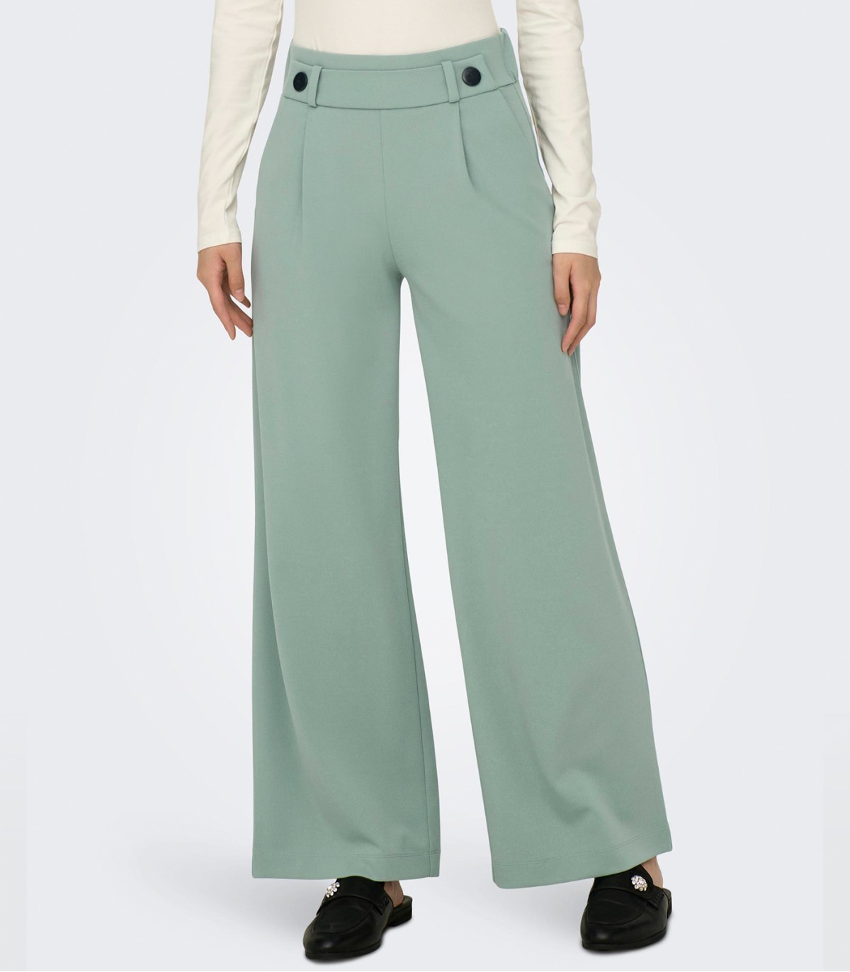 Широкие женские брюки от JDY - это элегантное и удобное решение для вашего гардероба. Они обладают стильным дизайном с пуговицами на талии и эластичной резинкой сзади, что обеспечивает идеальную посадку и комфорт в носке. Спереди выполнены складки, которые добавляют изысканности и объема этой модели. Изготовленные из эластичного материала, эти брюки обеспечивают свободу движений и комфорт на протяжении всего дня. Они идеально подходят как для повседневного образа, так и для создания стильного и элегантного вечернего лука.