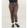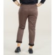 Элегантные и удобные коричневые брюки из мягкого материала, похожего на замшу. Брюки заужены к низу и имеют эластичный пояс, который регулируется шнурком. Нижние края отвернуты, что придает им более свободный и современный вид.