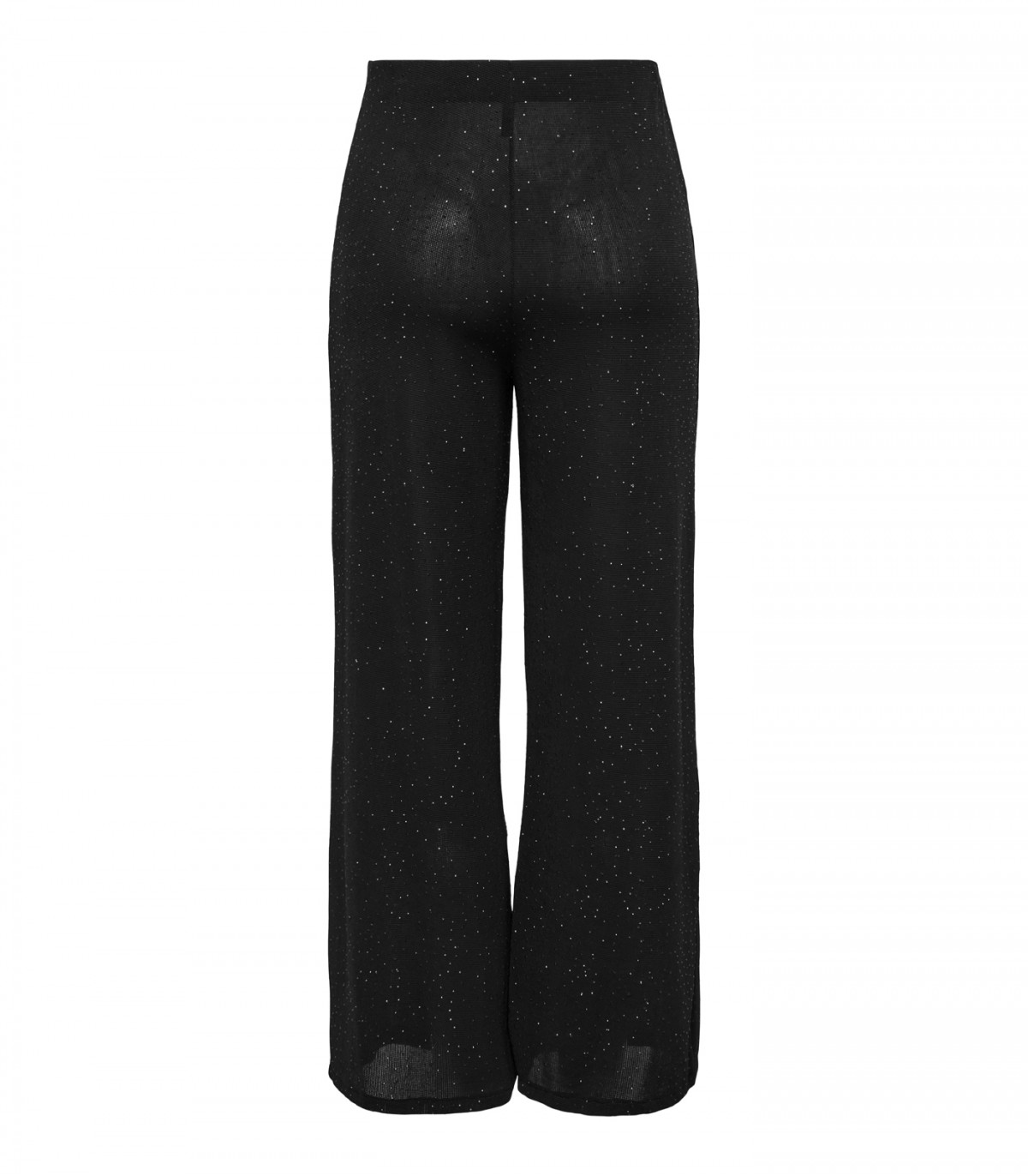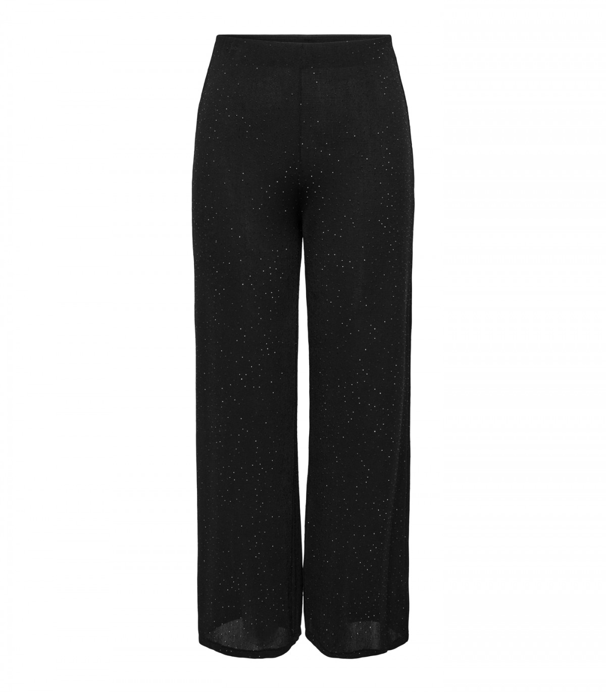 Легкие брюки из ткани идеально подходят как для повседневной носки, так и для торжественных случаев. Черная ткань украшена мелкими блестками, что придает образу изысканный блеск.