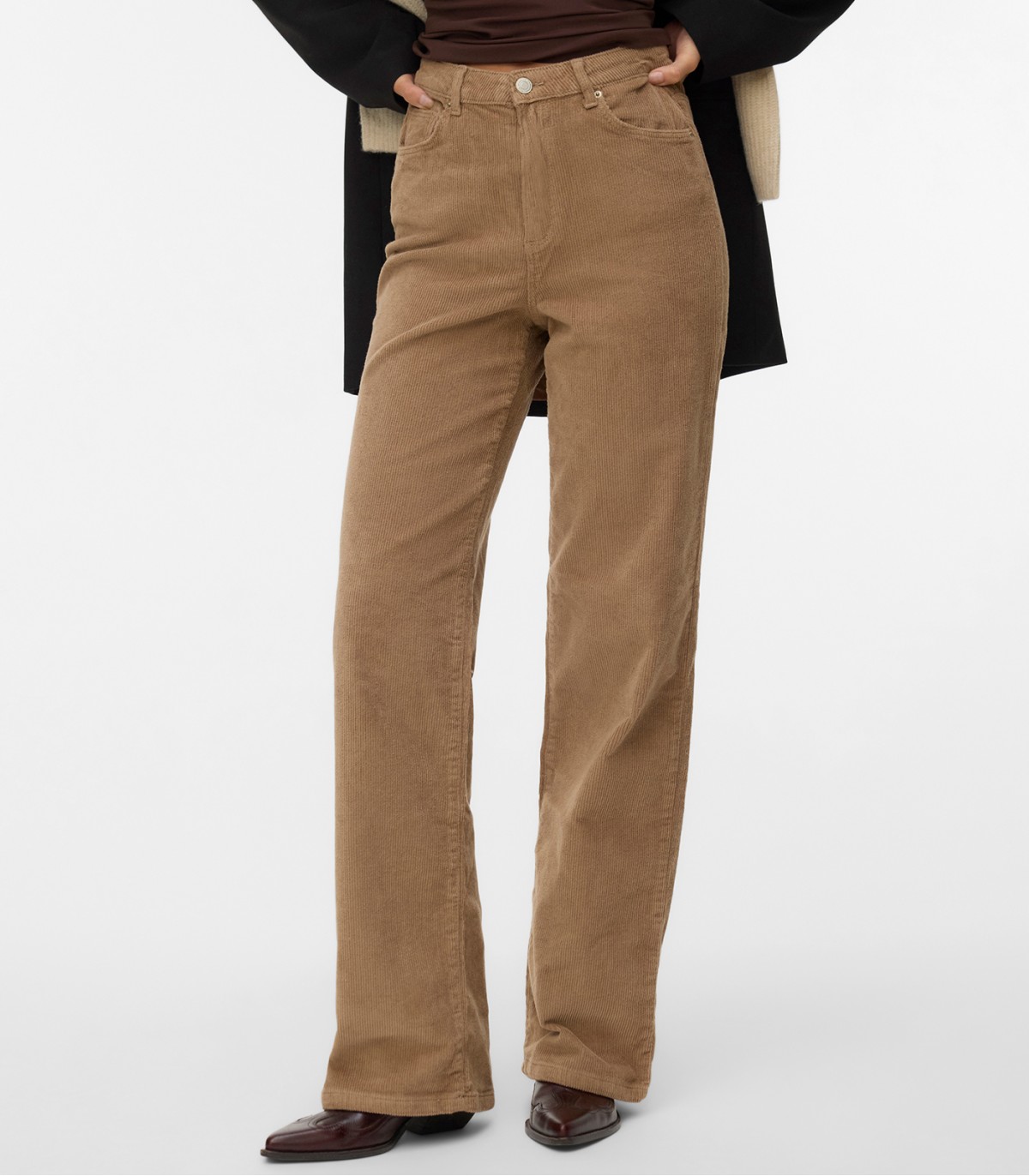 Эти женские джинсы от Vero Moda выполнены из мягкого и приятного на ощупь вельвета, что придает им винтажный и элегантный вид. Широкий крой создает расслабленный силуэт и обеспечивает комфорт при носке, делая джинсы идеальными для повседневных и стильных образов. Вельветовая текстура добавляет изделию уникальности и теплоты, что делает их подходящими для любого сезона. Эти джинсы легко комбинируются с различными топами и обувью, позволяя создавать разнообразные луки — от повседневных до более нарядных.