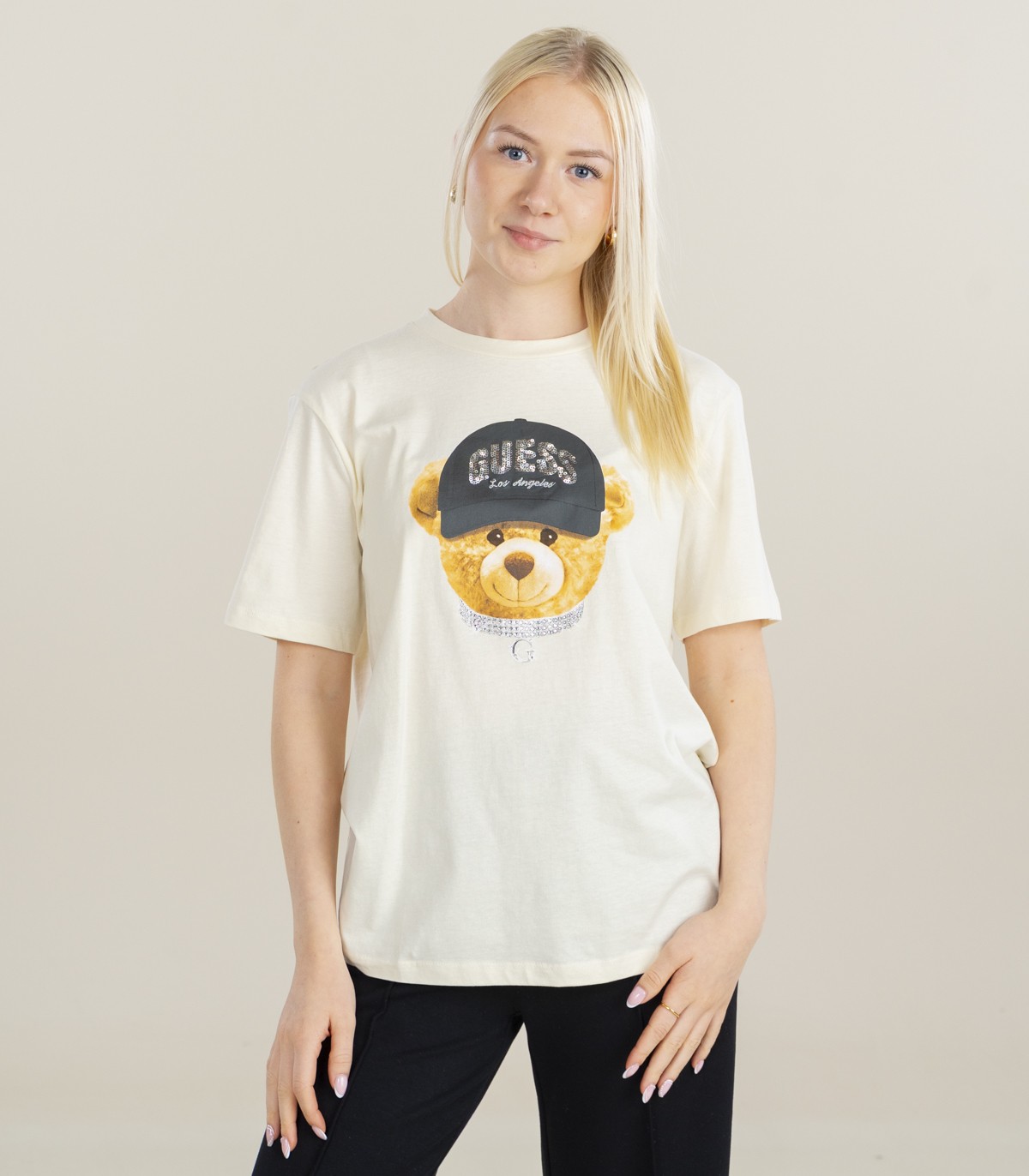 Веселая и удобная футболка с изображением медведя спереди . Свободный крой и классический круглый вырез идеально подходят для повседневной носки.
