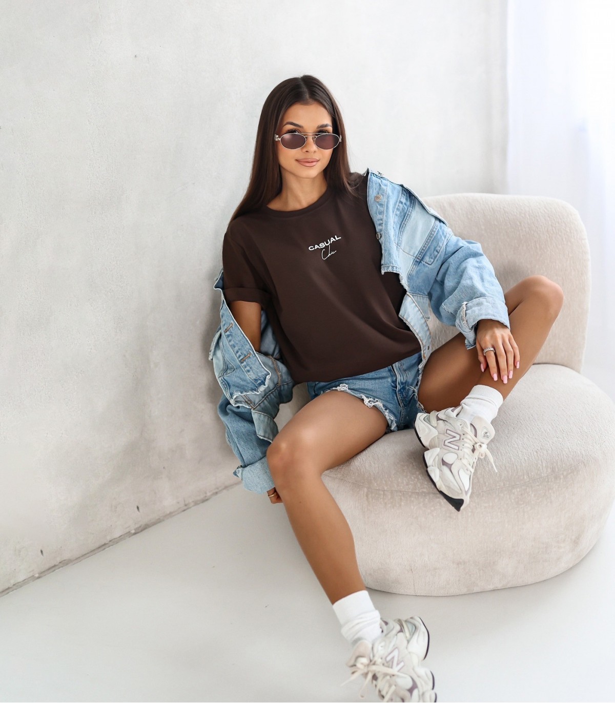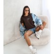 Женская футболка с круглым вырезом и короткими рукавам с отворотом. Прямой крой удобен для повседневной носки и отлично сочетается с джинсовой юбкой или другой повседневной одеждой.