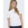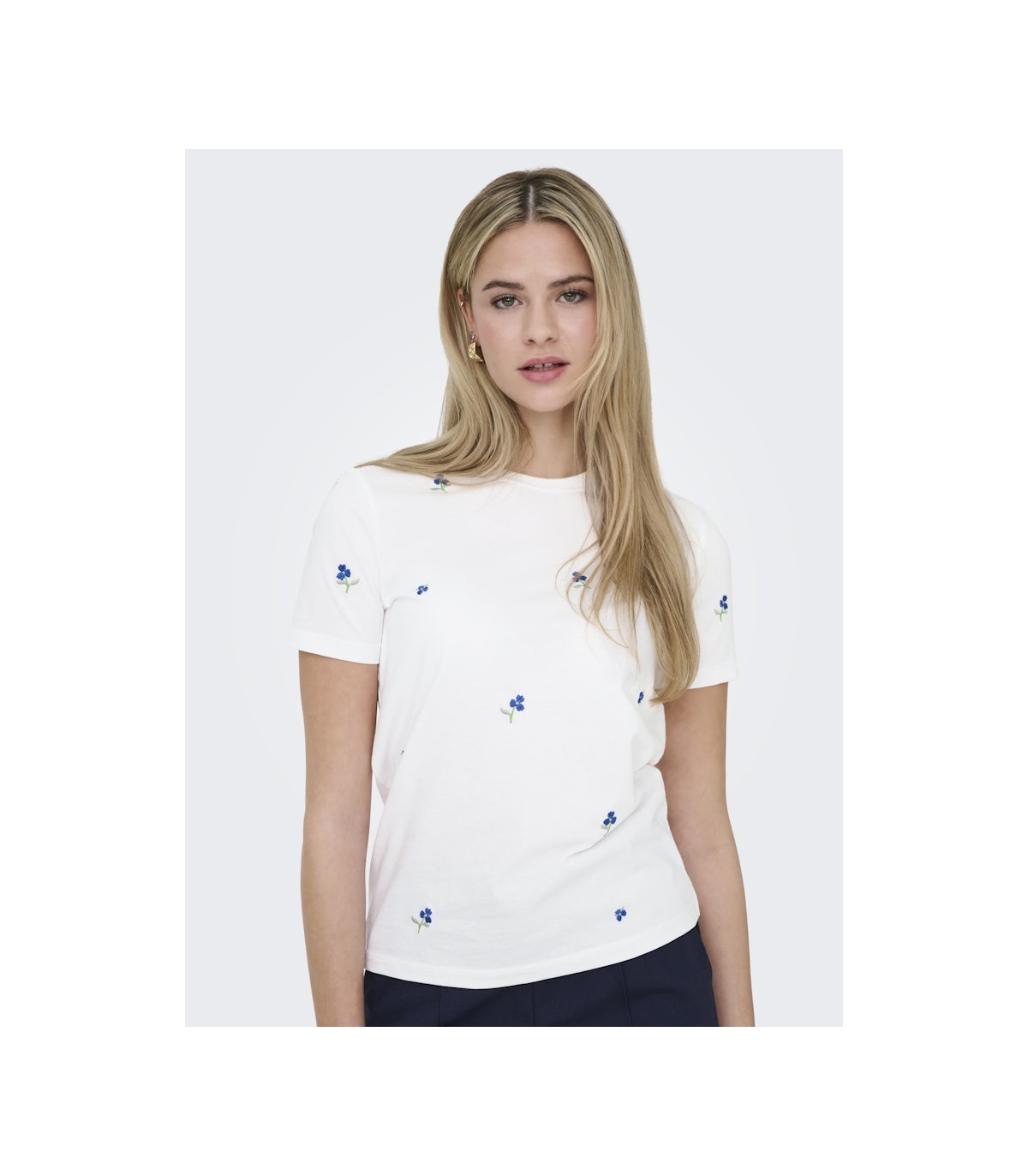 Футболка с короткими рукавами и небольшим цветочным принтом спереди, спинка однотонная.