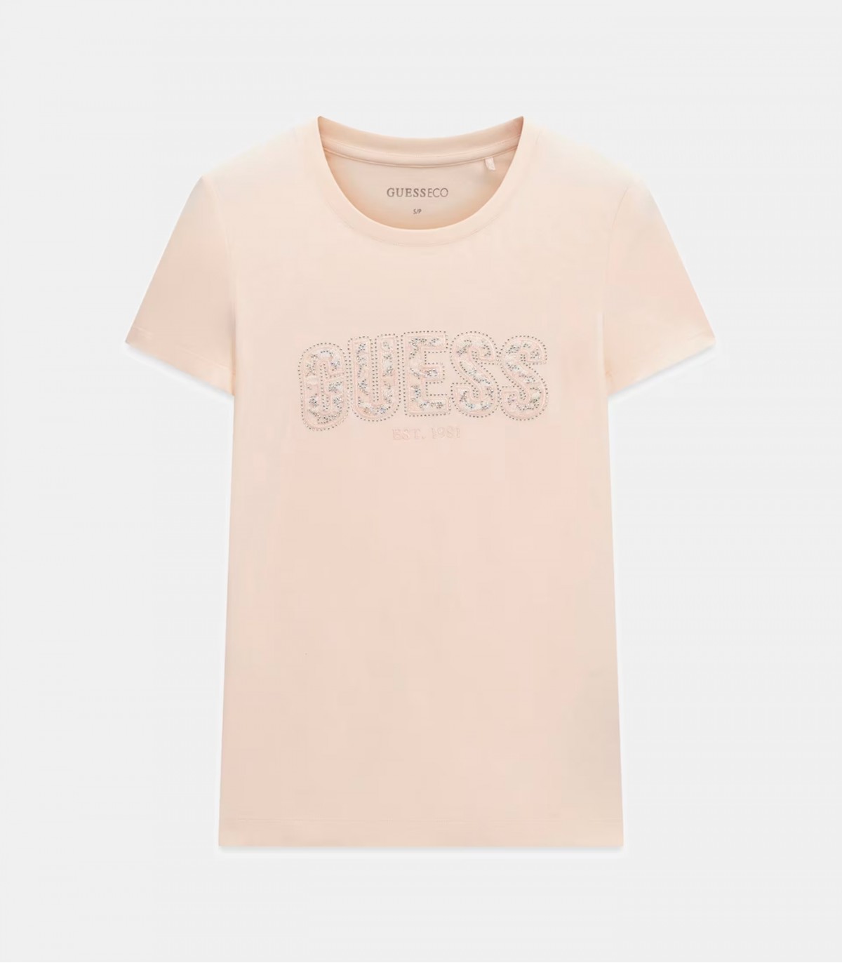 Женская футболка Guess приталена и украшена сверкающим логотипом. Мягкая и эластичная хлопковая ткань удобно сидит, а классический круглый вырез создает образ, неподвластный времени.