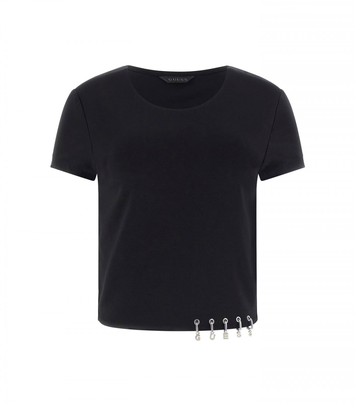 Короткий топ Guess для женщин имеет современный и минималистичный дизайн и подходит как для сочетания с джинсами, так и с юбками с высокой талией.