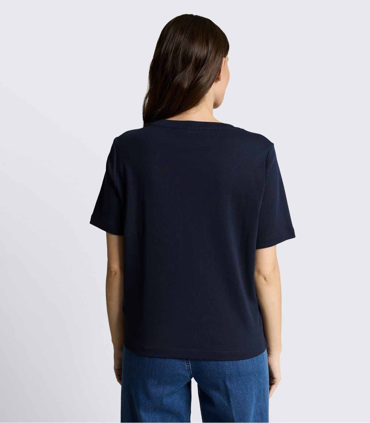 Женская футболка выполнена из непрозрачной хлопчатобумажной трикотажной ткани интерлок и имеет свободный крой. Модель комфортна для повседневной носки и легко сочетается с джинсами, брюками или юбками.