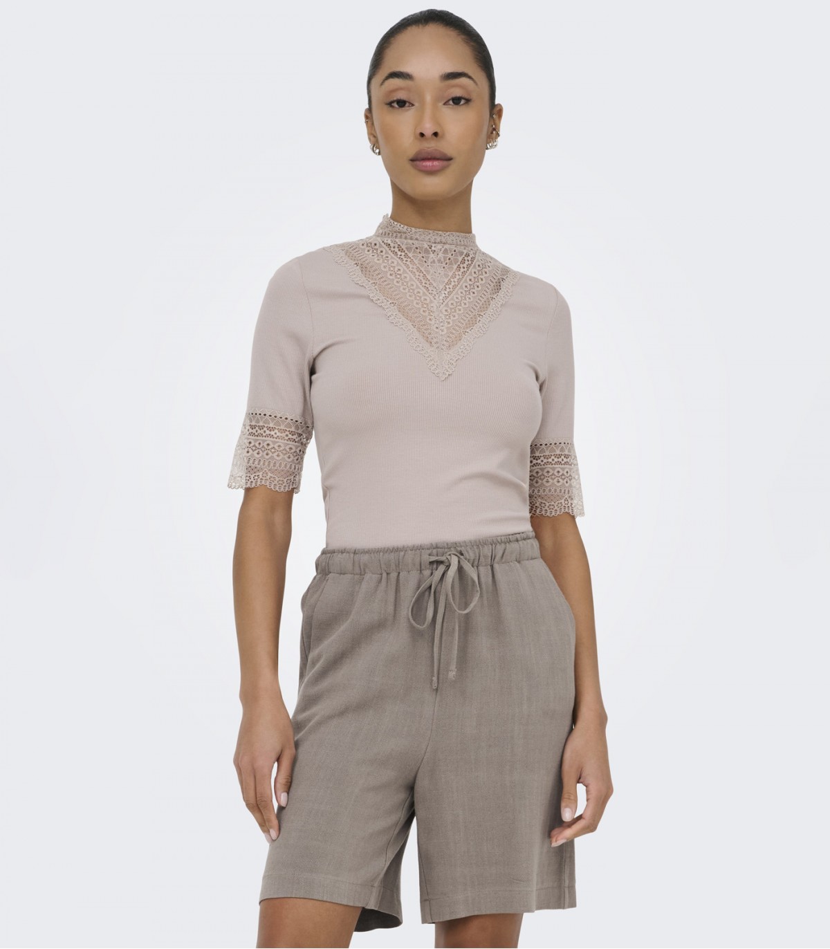 Женская футболка Only с высоким воротом-стойкой — элегантная и стильная модель с изысканными кружевными вставками. Выполнена из мягкого, приятного к телу материала, обеспечивающего комфорт в носке. Кружево спереди и сзади придает образу женственность и утонченность. Высокий воротник-стойка добавляет изящности, а короткие рукава, украшенные кружевной отделкой, подчеркивают романтичный стиль. Идеально сочетается с юбками, джинсами и брюками, позволяя создать как повседневный, так и более нарядный образ.