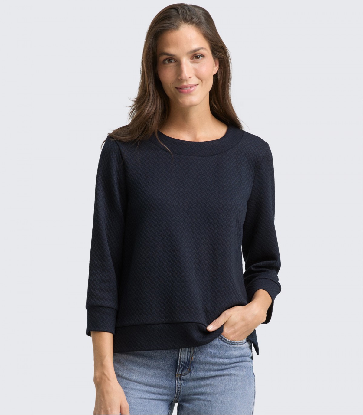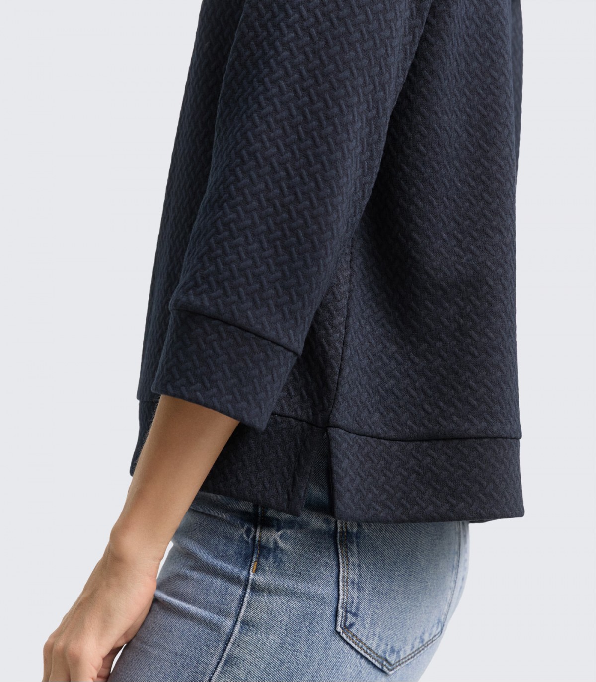 Укороченная толстовка из приятной структурированной ткани с рукавами длиной 7/8 и разрезами по бокам. Более свободный крой Boxy Fit обеспечивает комфорт в повседневной носке.