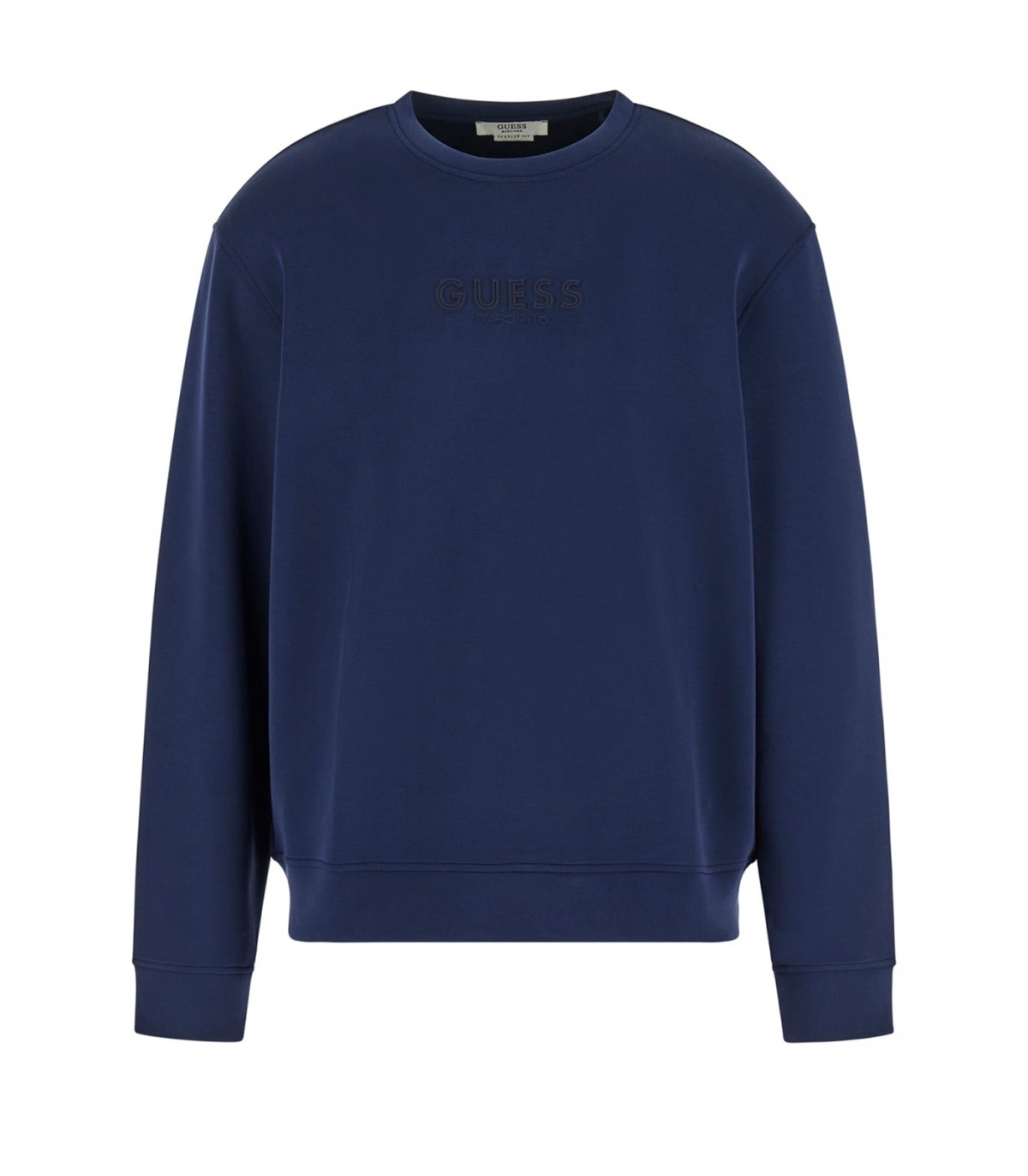 Темно-синяя мужская толстовка с небольшим логотипом Guess на груди. Удобный и классический крой, подходит для повседневной носки дома или в свободное время.