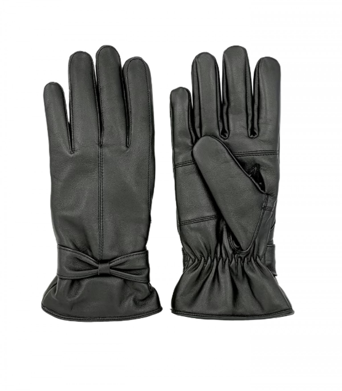 Элегантные женские кожаные перчатки идеально подходят для холодных дней. Перчатки изготовлены из мягкой кожи с теплой плюшевой подкладкой. На запястье резинка и элегантная завязка.