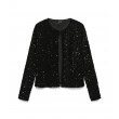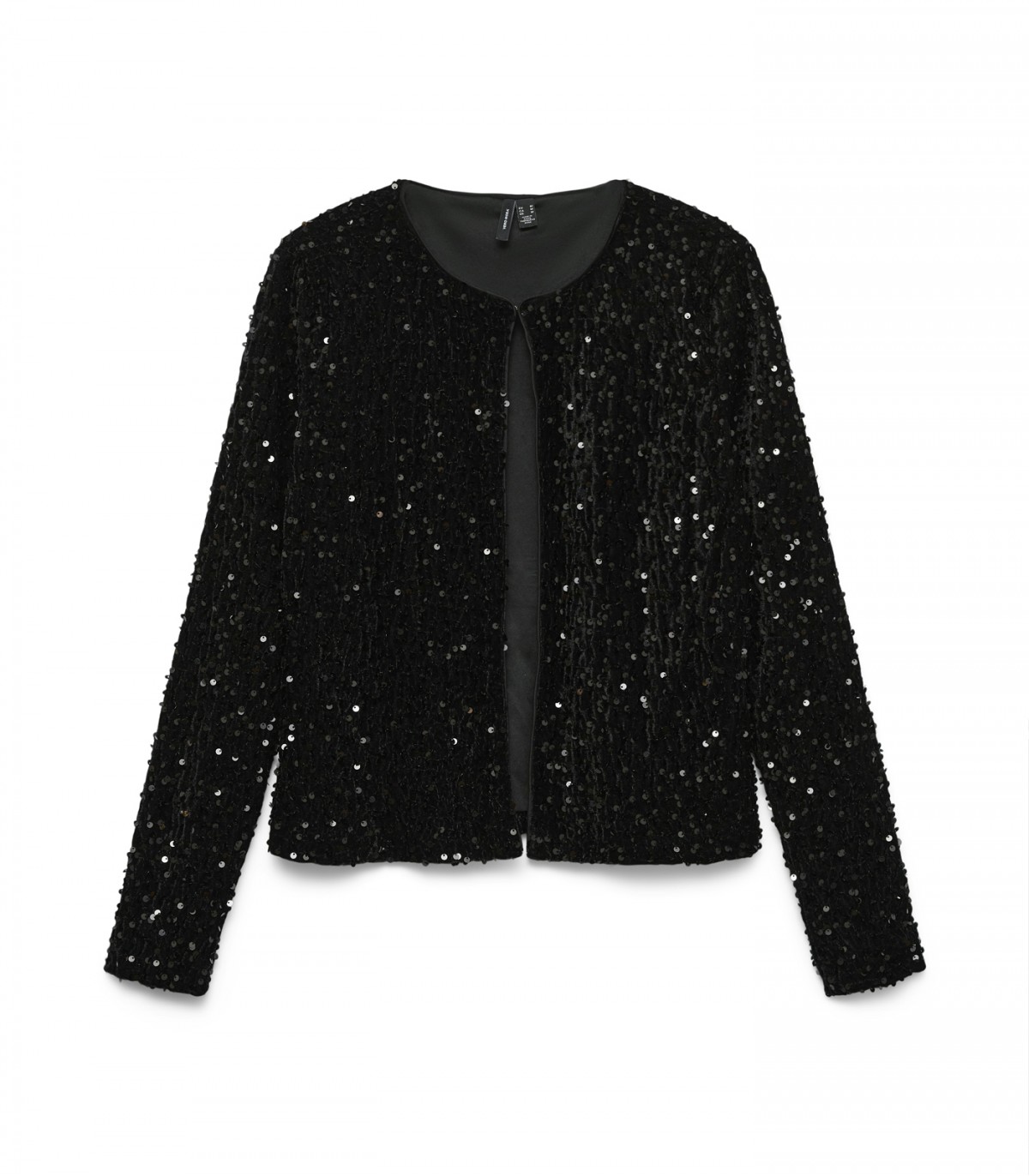 Этот сверкающий жакет добавит праздничности и элегантности любому образу. Расшитая пайетками поверхность играет на свету и создаёт эффектный образ, идеально подходящий для вечерних мероприятий или в качестве дополнения к праздничному наряду.
