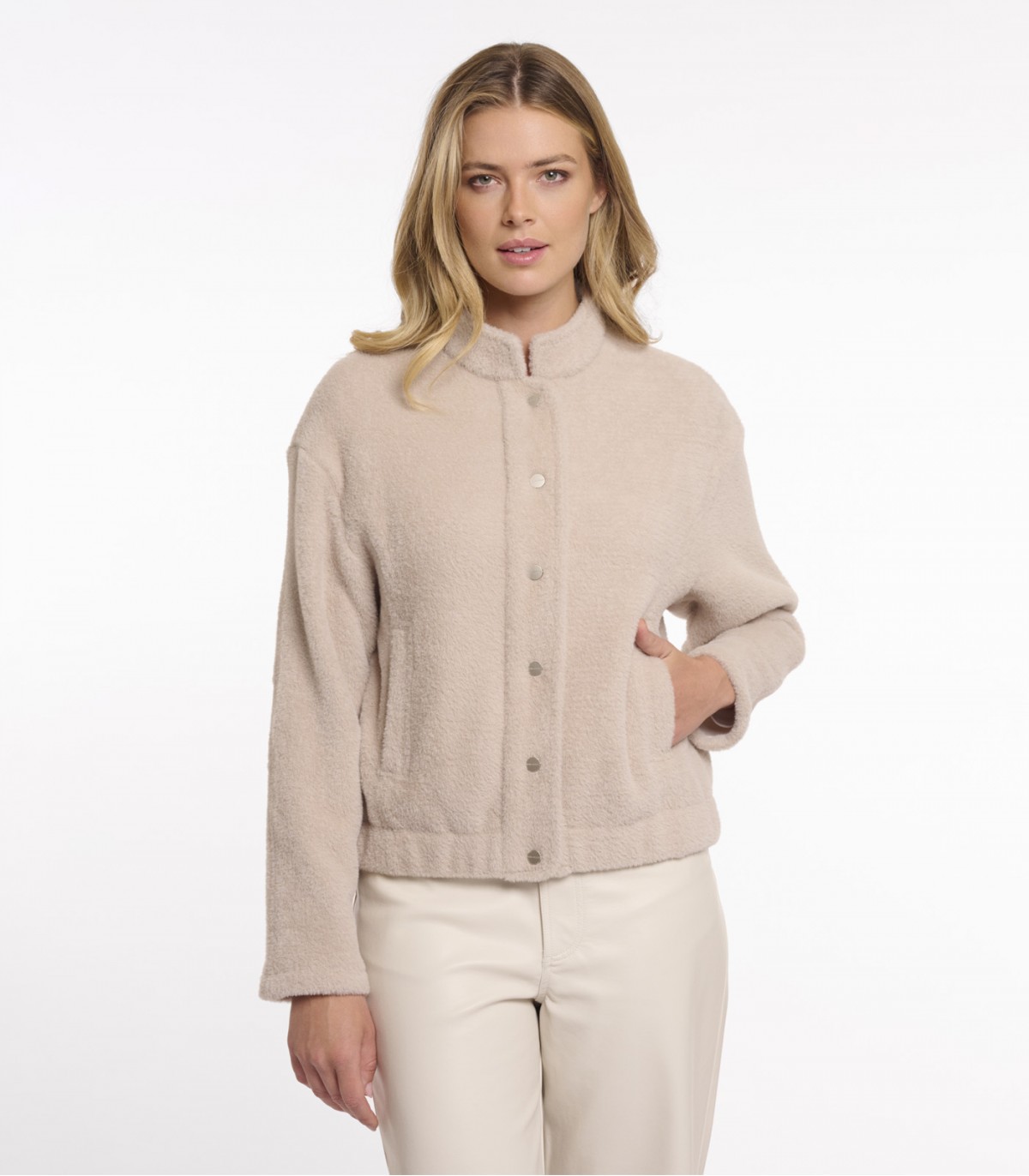 Эта куртка легко комбинируется с джинсами, брюками или юбками, создавая стильный и комфортный повседневный образ.